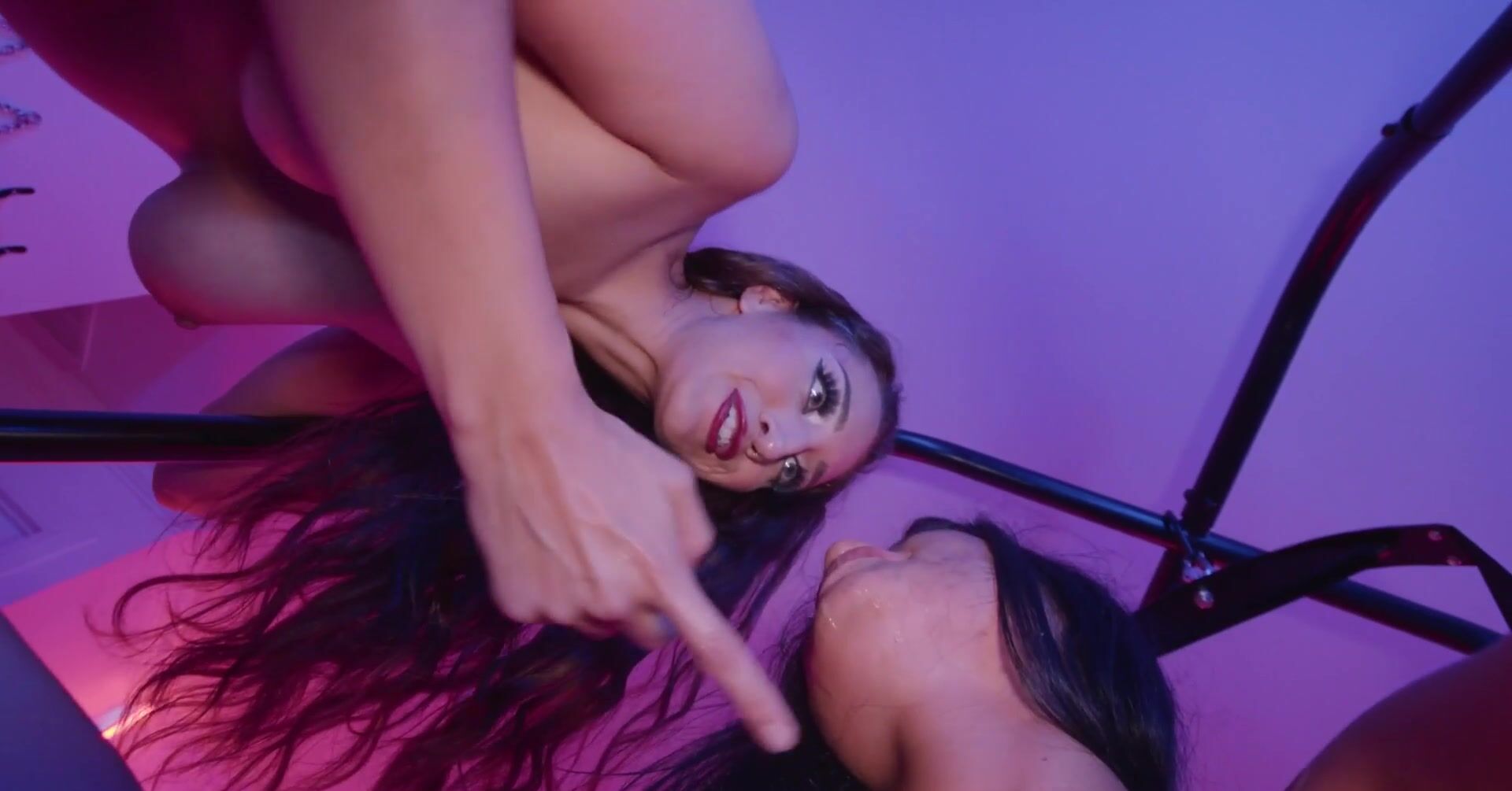 «Лесбиянка засовывает анальную пробку в попку милой подруги, а затем принимается её трахать в пизду с помощью страпона на секс качели. Девчонка в восторге, она получает нереальный кайф от такого траха, но тут приходит бойфренд. Довольная цыпочка спешит отсосать его фаллос и занимает привычное положение на качели, чтобы ебаться с удобством. Лесбиянка тоже принимает участие в сексе и наслаждается хуем.»
