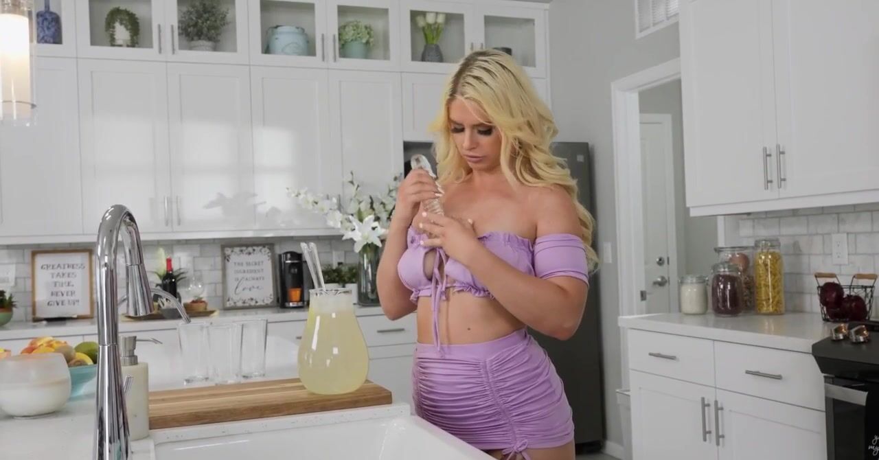 «Белокурая телка на кухне достает из морозилки замороженный искусственный хуй. В доме стоит невыносимая жара, так что блондинка с большой попой засовывает его в себя, чтобы остудиться. За дрочкой её застает приятель, который предлагает воспользоваться его хуем. Но он ведь горячий, а бестии хочется чего-то прохладного. Она всё равно соглашается на еблю, принимается сосать фаллос и отдается в вагину в спальне.»