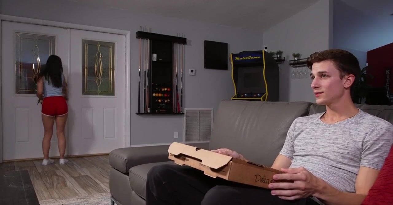 «Пацан вырезает дырку в коробке пиццы и засовывает туда свой член, желая таким образом соблазнить милую сестру в очках. Привлекательной девушке это не нравится, она возмущается и кричит на брата. Несмотря на её испорченное настроение, у парня получилось убедить девушку взять хуй в рот и сделать ему минет. Горячая сестричка прекрасно провела время, она страстно трахнулась и даже сперму проглотила после ебли.»