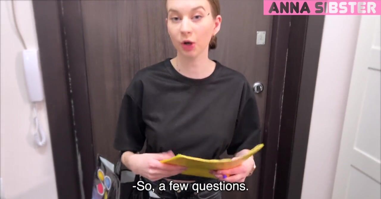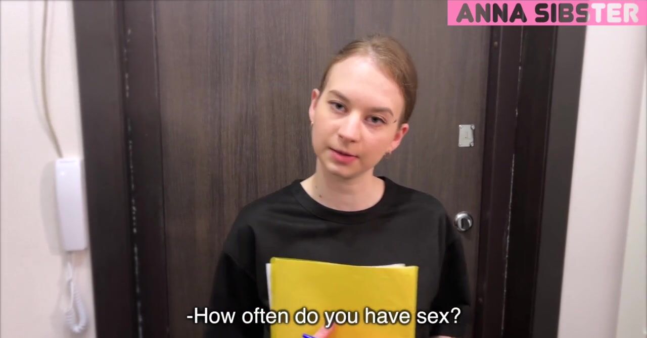 «Милая девушка проводит соцопрос, а в конце обещает заняться с парнем сексом. Своё слово девушка сдерживает, она принимается мастурбировать перед ошарашенным пацаном, засовывая искусственный пенис в свою киску. А далее черноволосая крошка уже просит угостить её членом, чтобы она могла его отсосать и трахнуться. Такой опрос пареньку понравился, он поимел худышку с бритой киской и спустил сперму на упругую попку.»