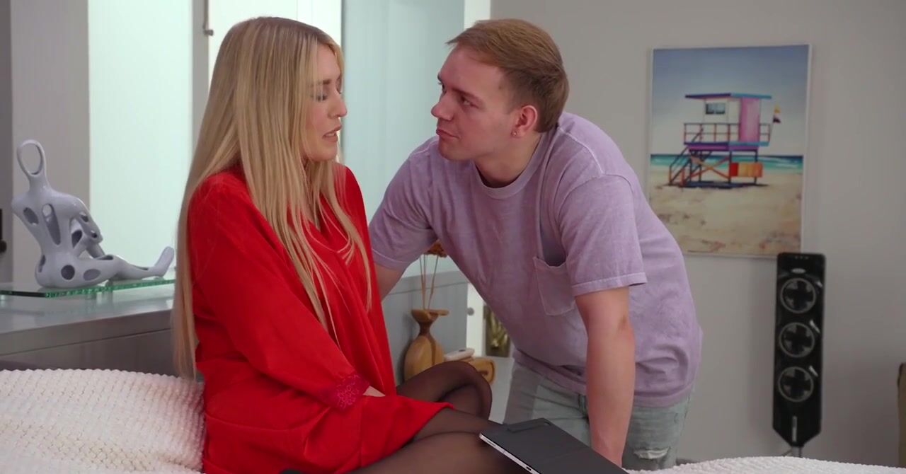 «Пацан приехал к маме друга, чтобы настроить её ноутбук. Стояло ему увидеть женщину, как парень сразу же понял - она собирается его соблазнить. Одета белокурая мамаша была в красный халатик и черное белье с чулками. На самом деле о ебле она и не думала, но теперь не смогла отказаться от крепкого члена молодчика. А пацан зашел с козырей, сперва он вылизал её бритую пизду как следует, а потом трахнул бестию.»