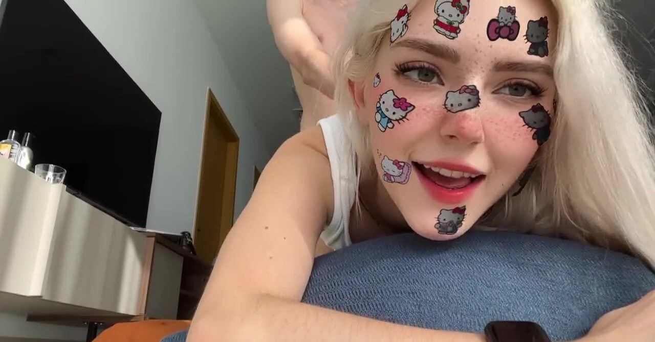 Блондинка с милым фильтром на лице прыгает на члене
