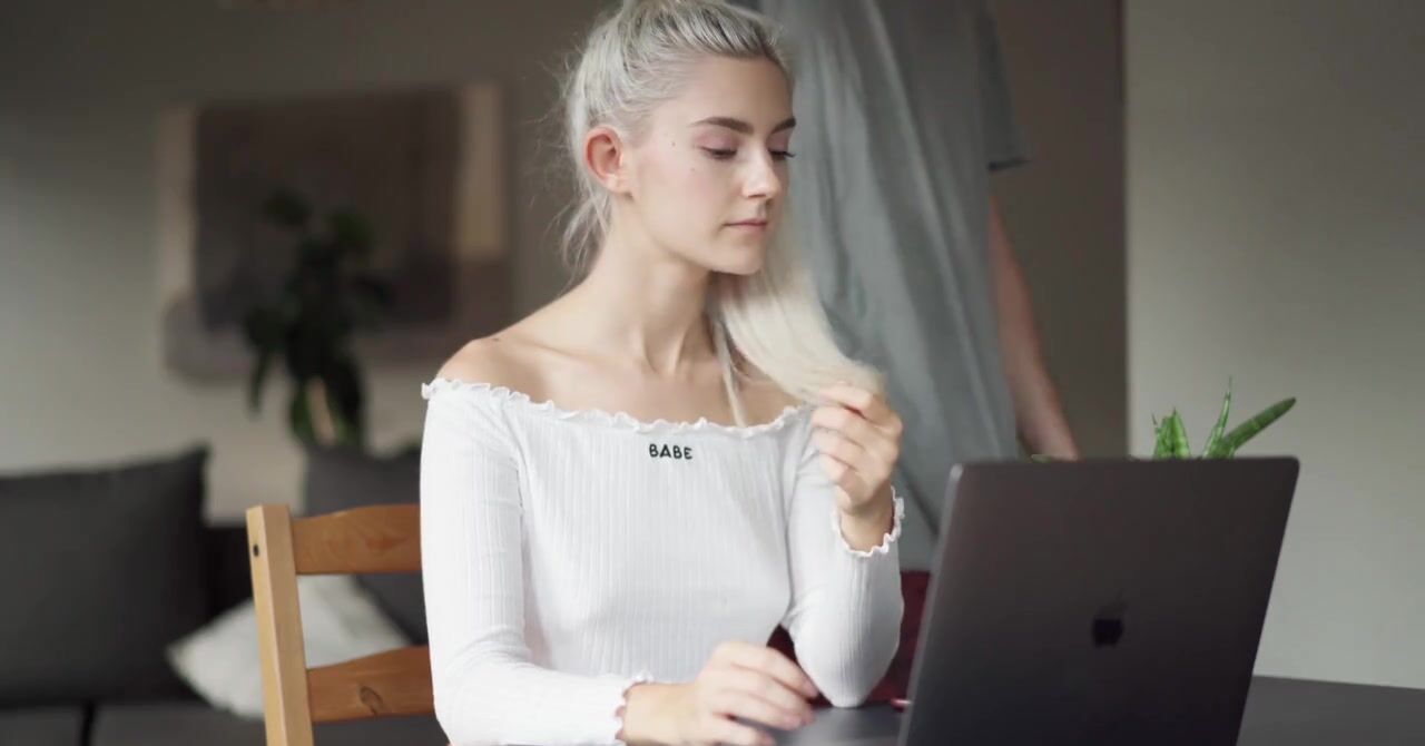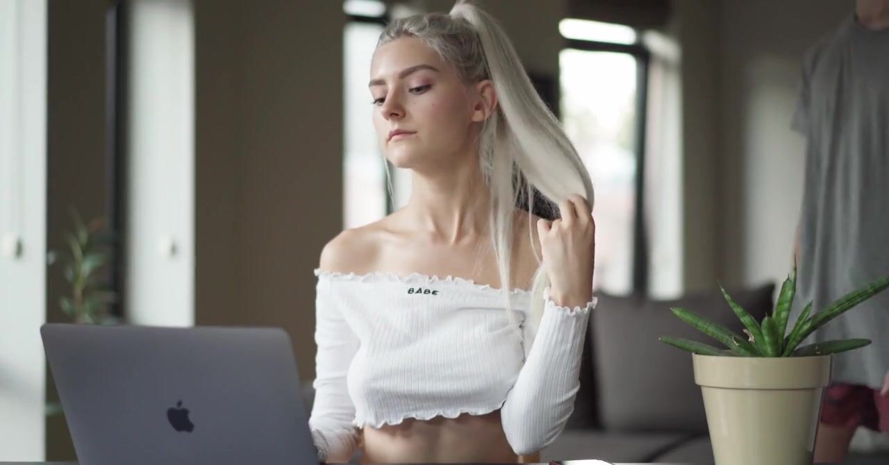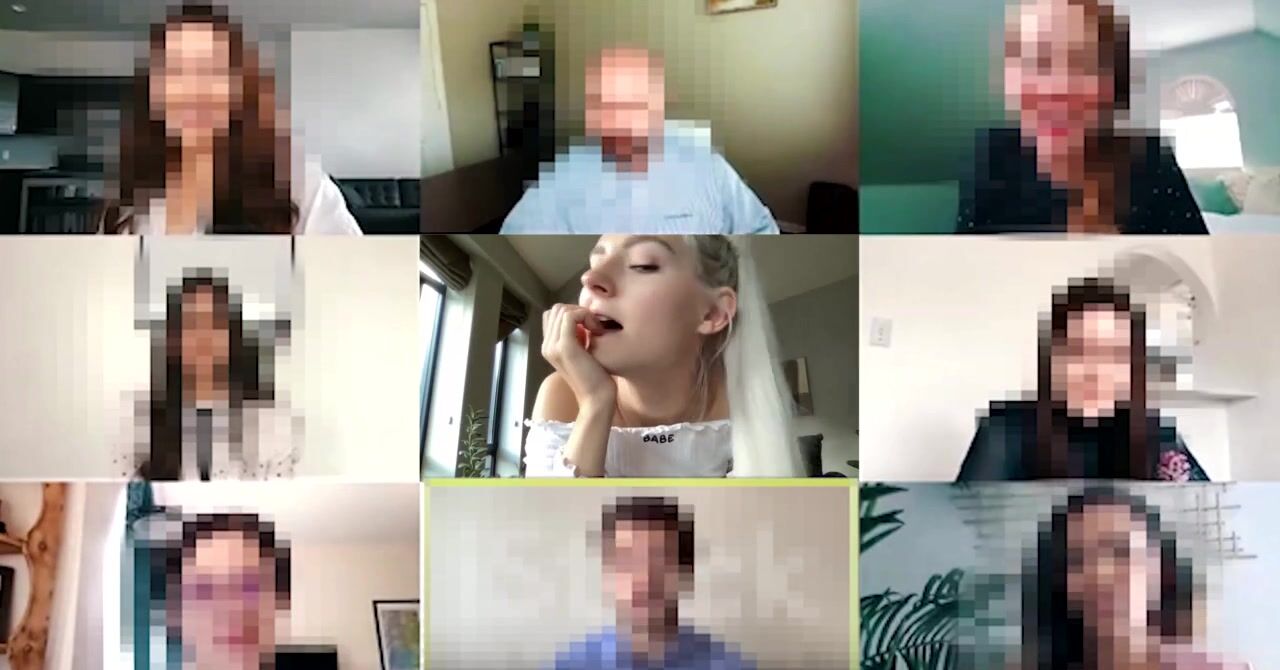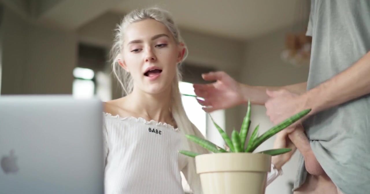 Блондинка Ева Эльфи трахается во время видеоконференции в Zoom
