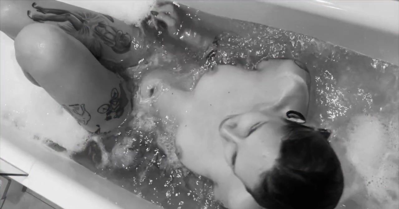 «Татуированная телка принимает ванну, но недолго, ведь в ванную комнату входит бойфренд, который тоже раздевается и показывает свой крепкий хуй. Парень просит брюнетку сделать ему качественный минет, отчего та не отказывается. Черноволосая крошка с маленькими сиськами любит сосать, поэтому принимается как следует работать ротиком. Стройная бестия сама же получила кайф от орального секса и попробовала сперму на вкус.»