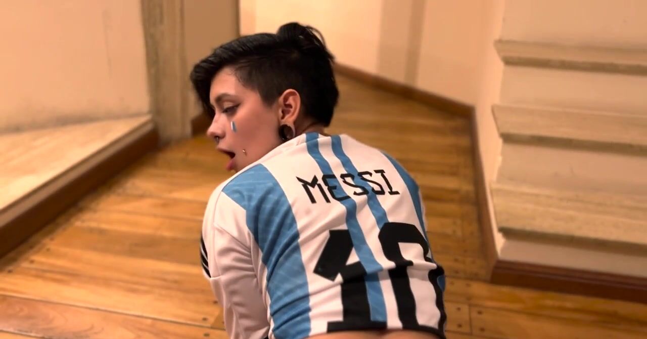 «Любимая команда футбольного фаната проиграла и поэтому теперь он срывает зло на киске любимой девушки, которую жестко трахает в пизду. Брюнетке же такой подход нравится, она всегда радуется когда команда парня проигрывает. Тогда черноволосая цыпочка может насладиться страстной еблей, самец её грубо имеет как в пизду, так и в рот. Измазанная слюной сучка кончает и кричит когда хер входит в пилотку по самые яйца.»