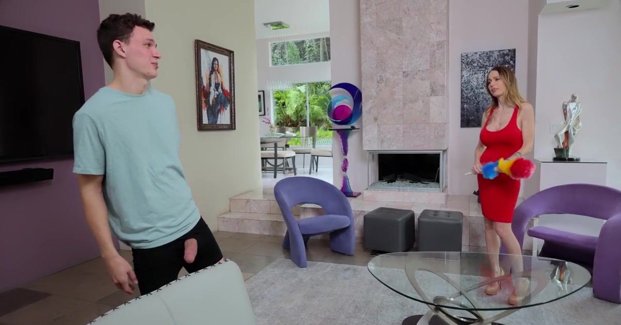 «Заботливая мачеха решается заняться сексом с пасынком, чтобы у того не было проблем в постели. Оказывается, что у пацана ещё не было сексуального опыта, поэтому милфа с большими силиконовыми сиськами обязана с ним трахнуться, чтобы всему научить молодчика. Неопытный пацан быстро всему учится, вот он уже жарит мамочку в киску на кровати, а так же наслаждается минетом от неё. А сосет опытная развратница очень круто.»
