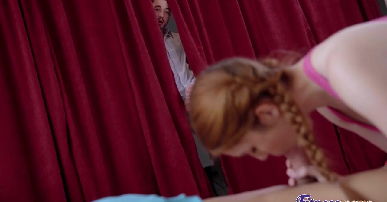 «Рыжая девушка с косичками отсосала член бойфренда перед тренировкой, а потом возбудила тренера. Пока любимый парень смотрел на её через щель, стройная проказница с маленькими сиськами соблазнила тренера и стала с ним ебаться. Бестия сделала минет и села на хер. Уже вскоре к ним присоединился и кавалер. Теперь фигуристая крошка отдалась ребятам сразу в обе дырочки и получила удовольствие от двойного проникновения.»