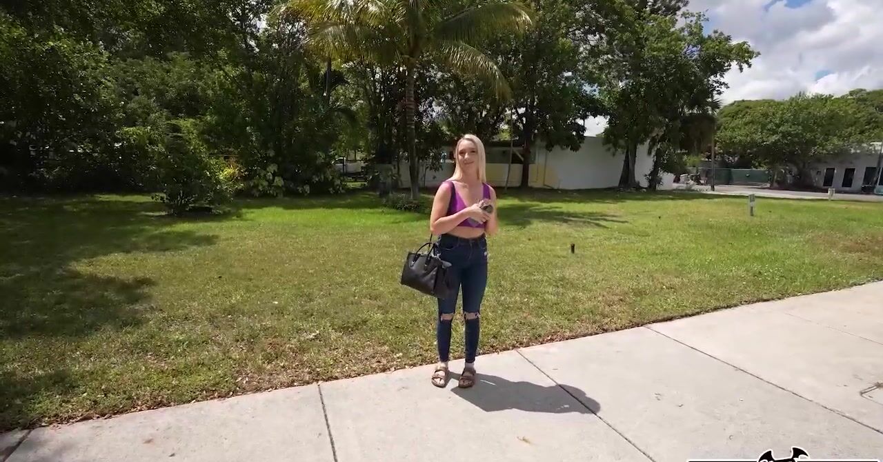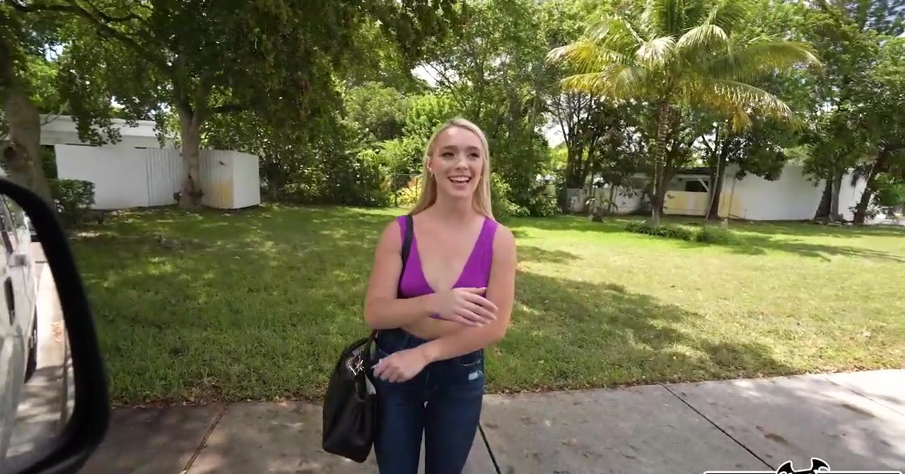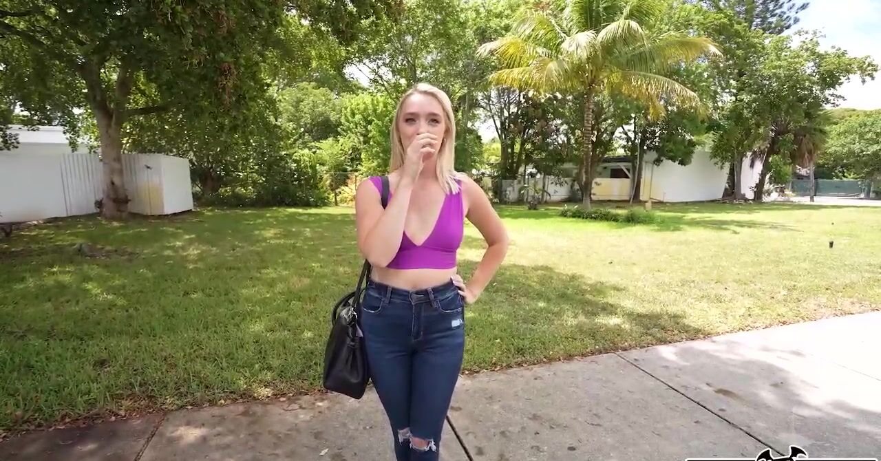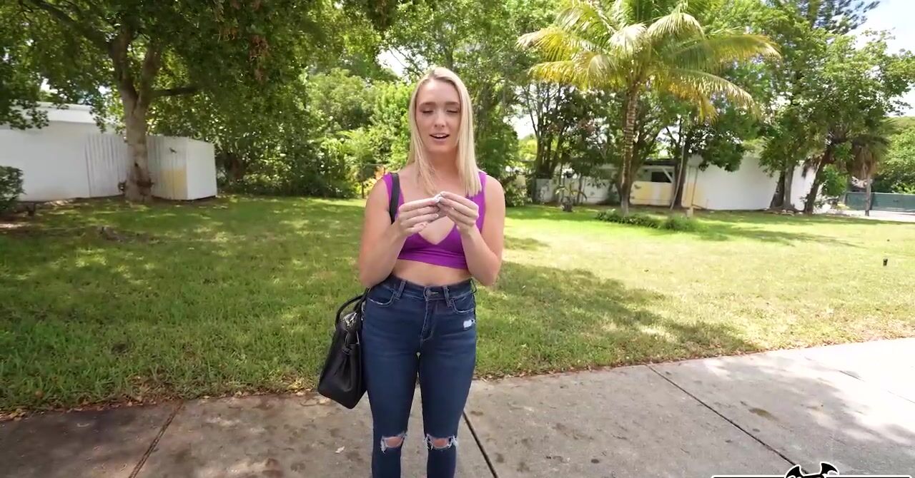 Блондинка не смогла устоять перед соблазном, отдалась за деньги