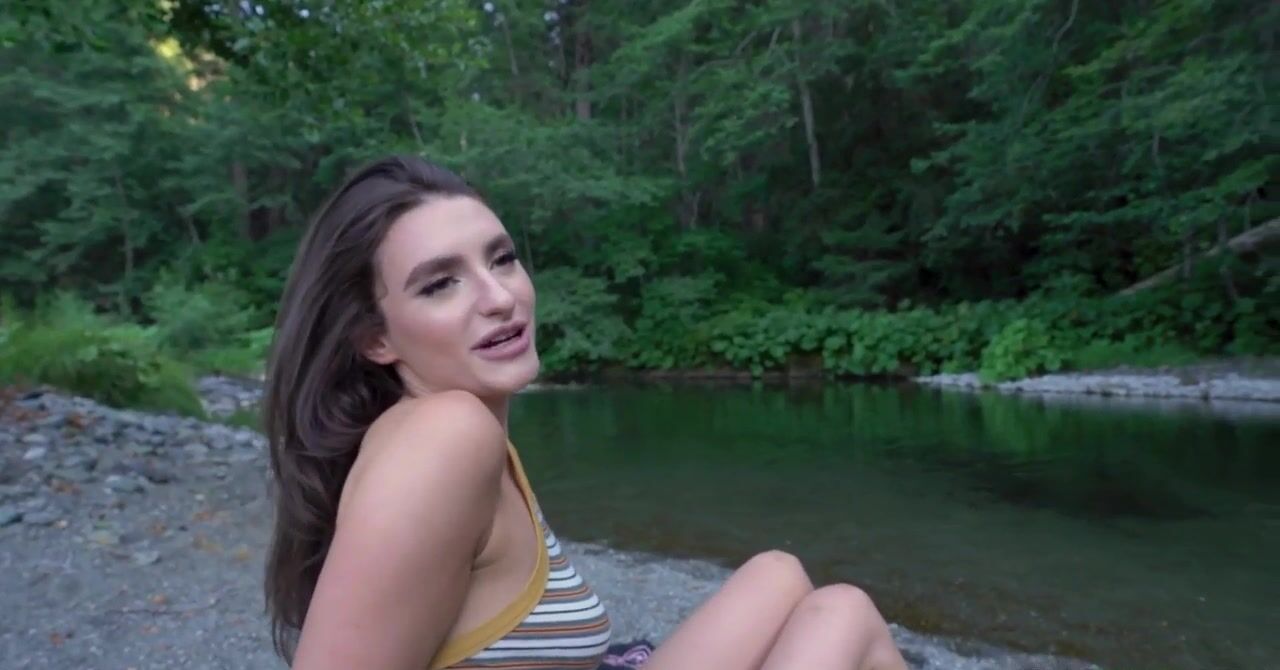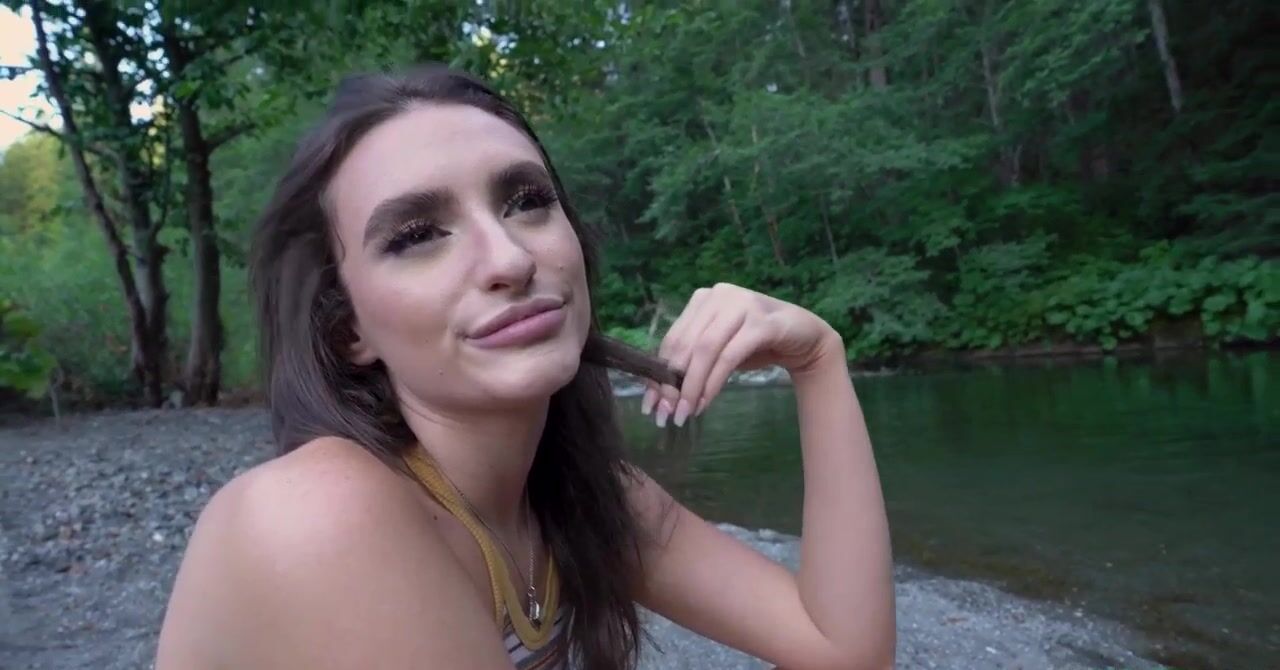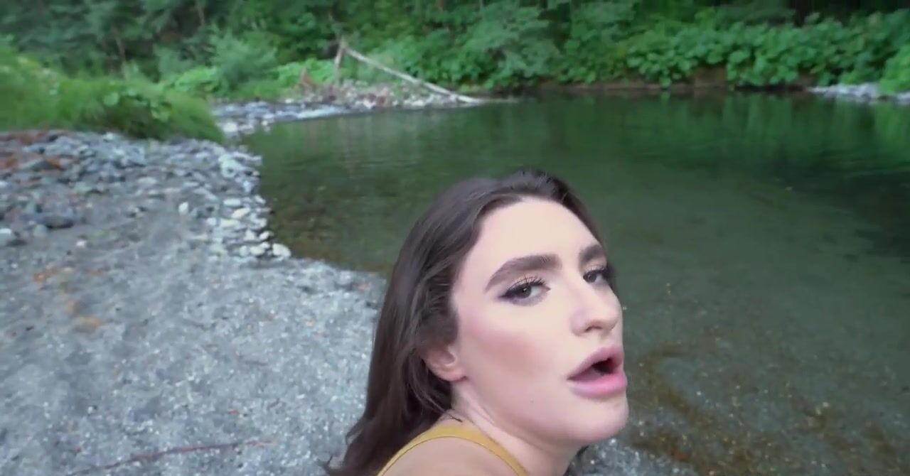 «Привлекательная подруга отвела приятеля к реке. Как оказалось уже вскоре, она хотела совсем не поболтать на природе. Черноволосая телка намеревалась заняться сексом на свежем воздухе. Крошка показала свои сиськи и возбудила пацана, а затем поспешила стянуть с него штаны, чтобы сделать качественный минет. Проказница активно поработала своим ротиком и отдалась в пизду. Когда пацан собрался кончать, она широко открыла рот и высунула язык.»