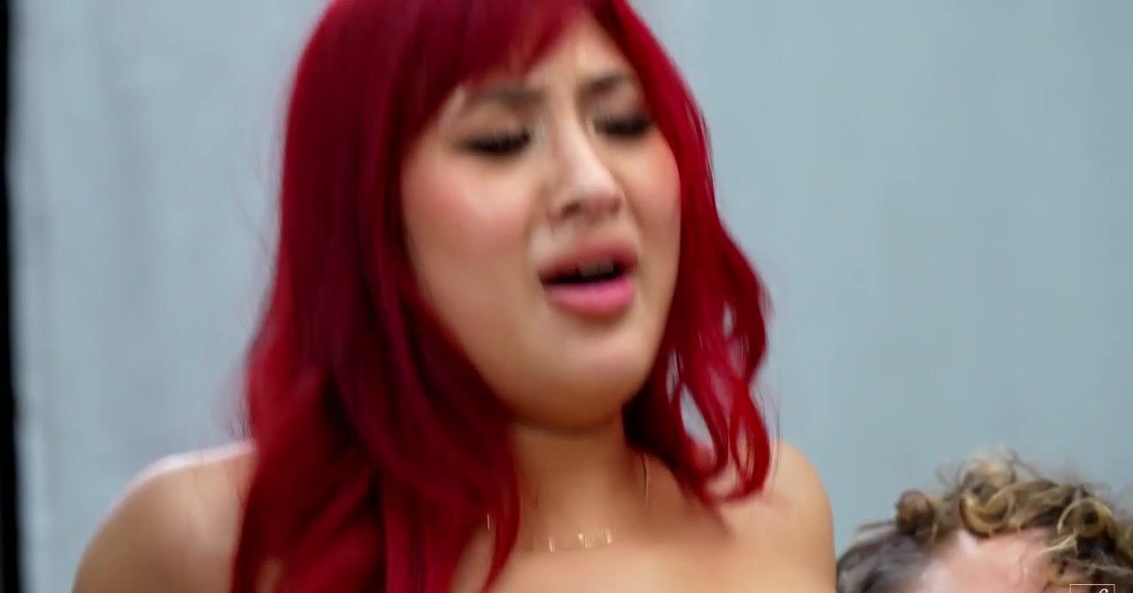 Рыжая азиатка в развратном платье соблазняет соседа