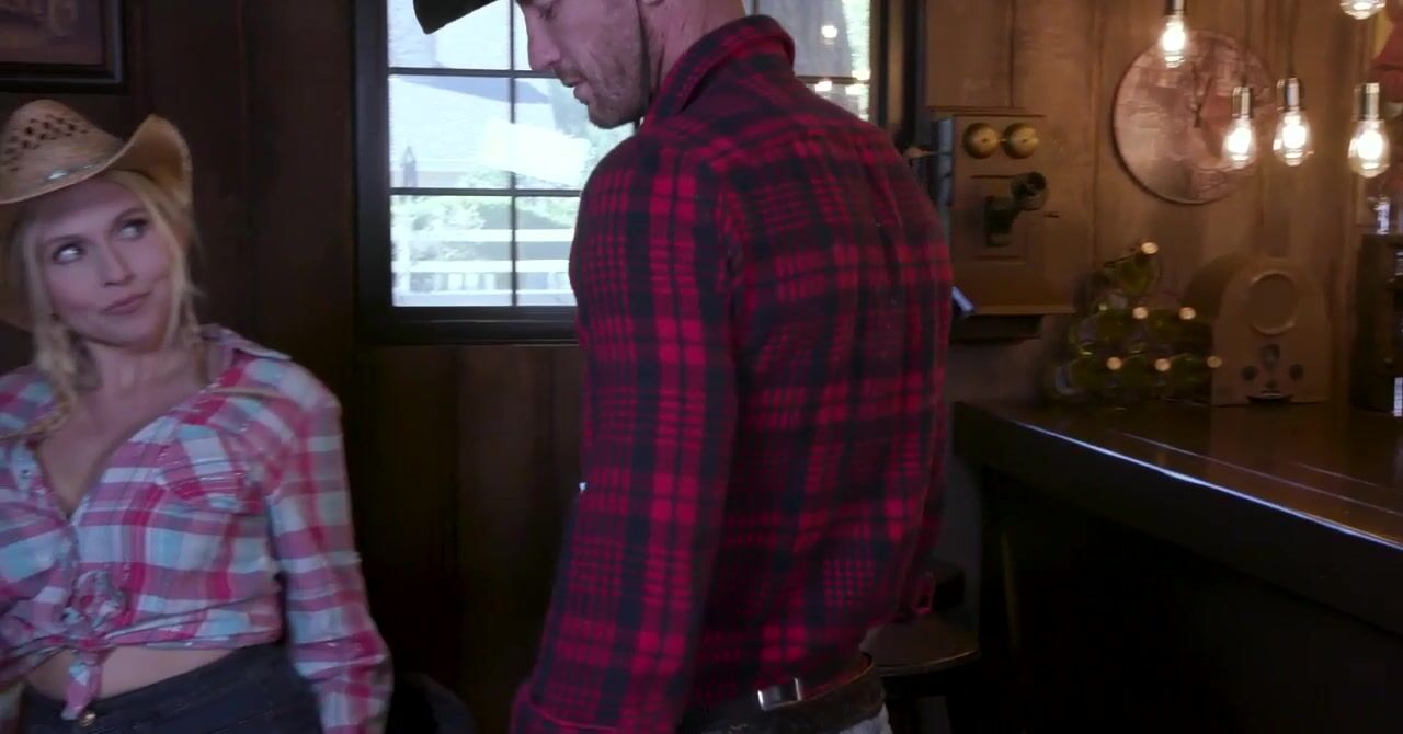 «Мужик после работы в поле заходит в ковбойский бар, чтобы выпить стопочку и расслабиться, но жаркая барменша предлагает ему кое-то получше выпивки. Она намекает на свою пизду. Белокурая милфа с косичками сама давно не ебалась и просится на член. Опытная бестия с соблазнительным телом принимается сосать и отдается в вагину прямо в заведении. Там больше никого нет, так что никто им не мешает, можно творить разврат.»
