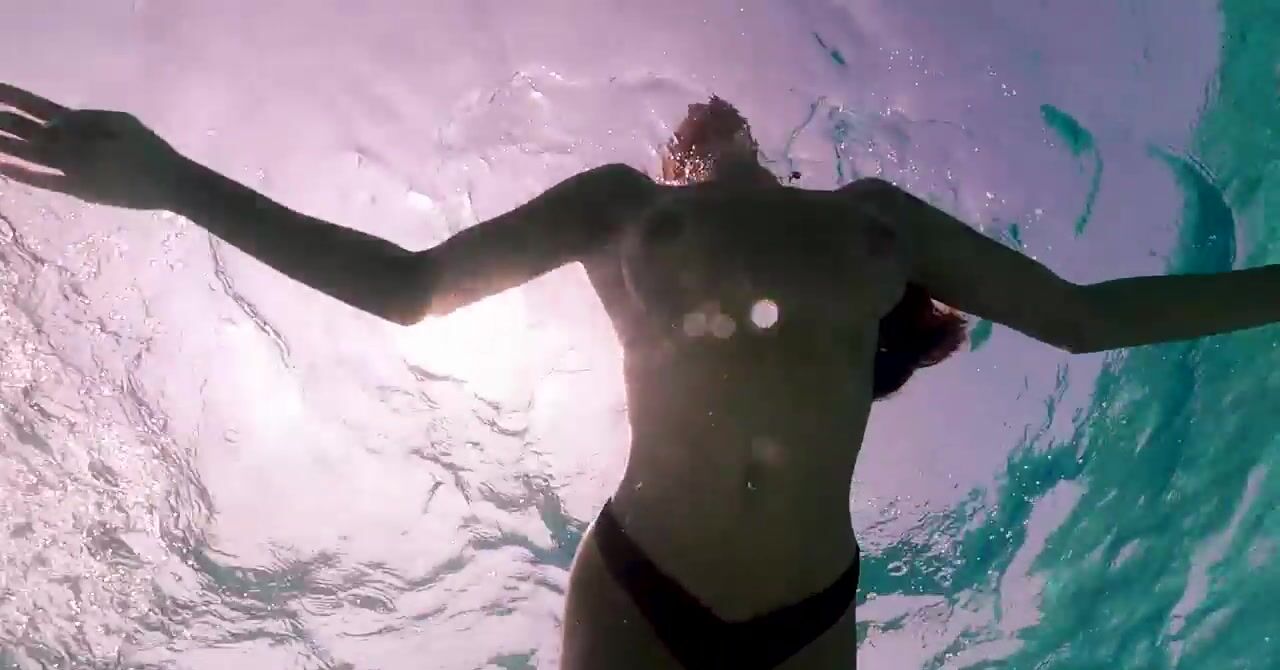 «Мужик на отдыхе загорает полностью голым, чтобы не было никаких белых полосок на теле. Этим он привлекает красивую соседку, которая снимает домик рядом. Девушка плавала и увидела парня со стоячим членом. Конечно же она захотела познакомиться ближе. Жаркая брюнетка уже вскоре принялась ласкать пенис руками и поспешила отдаться в киску, получая удовольствие от спонтанного секса на террасе около моря.»