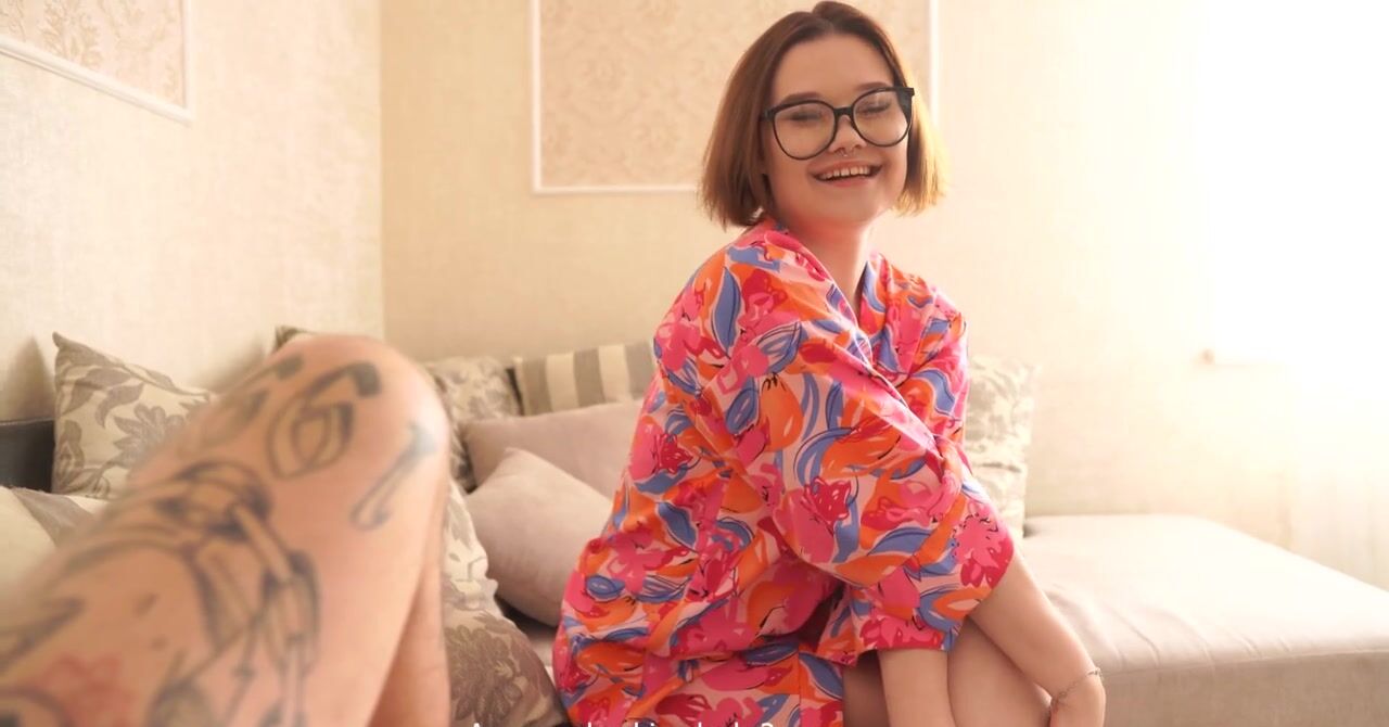 «Рыжая девушка в халатике заигрывает с парнем, желая заняться сексом. Эта привлекательная крошка в очках намекает на интим и достает пенис с его штанов, чтобы сделать минет. Она быстро поднимает хер, смачно его полируя. А далее проказница уже вскоре раком и прогибает спину как можно сильнее. Она отдается в пилотку и наслаждается половым актом. Крошка получает оргазм и спешит подставить лицо под сперму.»