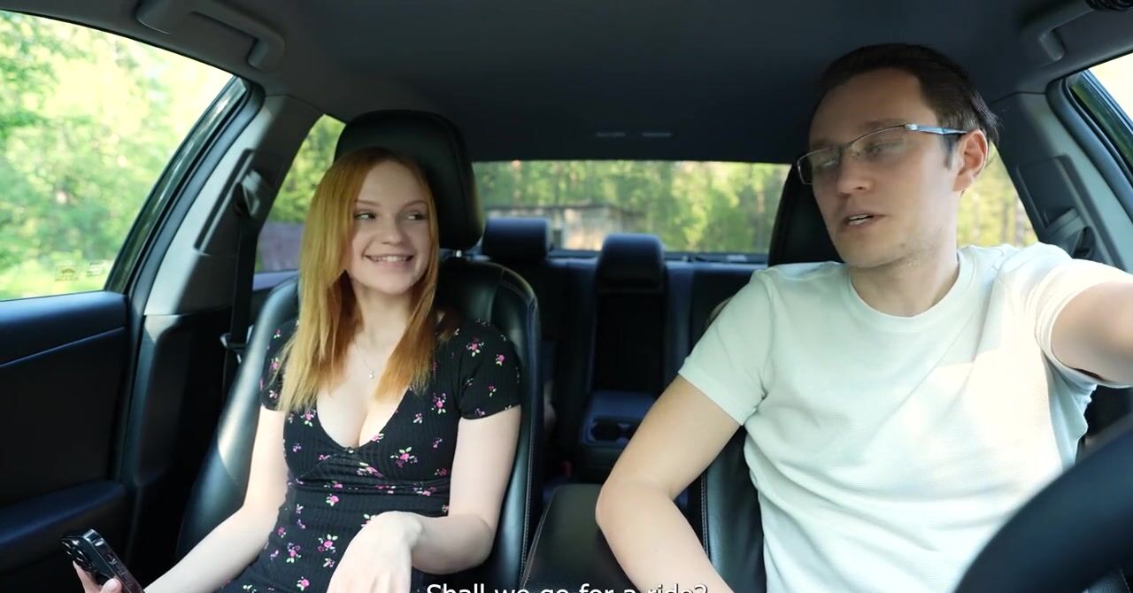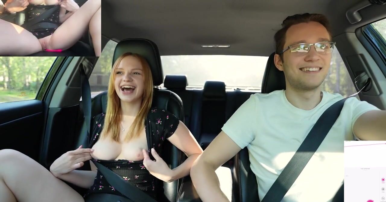 «Рыженькая девушка перед поездкой с парнем на машине в другой город, решила засунуть в киску вибратор. Пульт управления она вручила бойфренду, которого это всё нереально возбудило. Игривая крошка стала постанывать на пассажирском сидении, расставляя ноги в стороны. Девка не выдержала, достала пенис парня со штанов и принялась его смачно сосать. Пришлось даже машину остановить, чтобы трахнуть проказницу.»