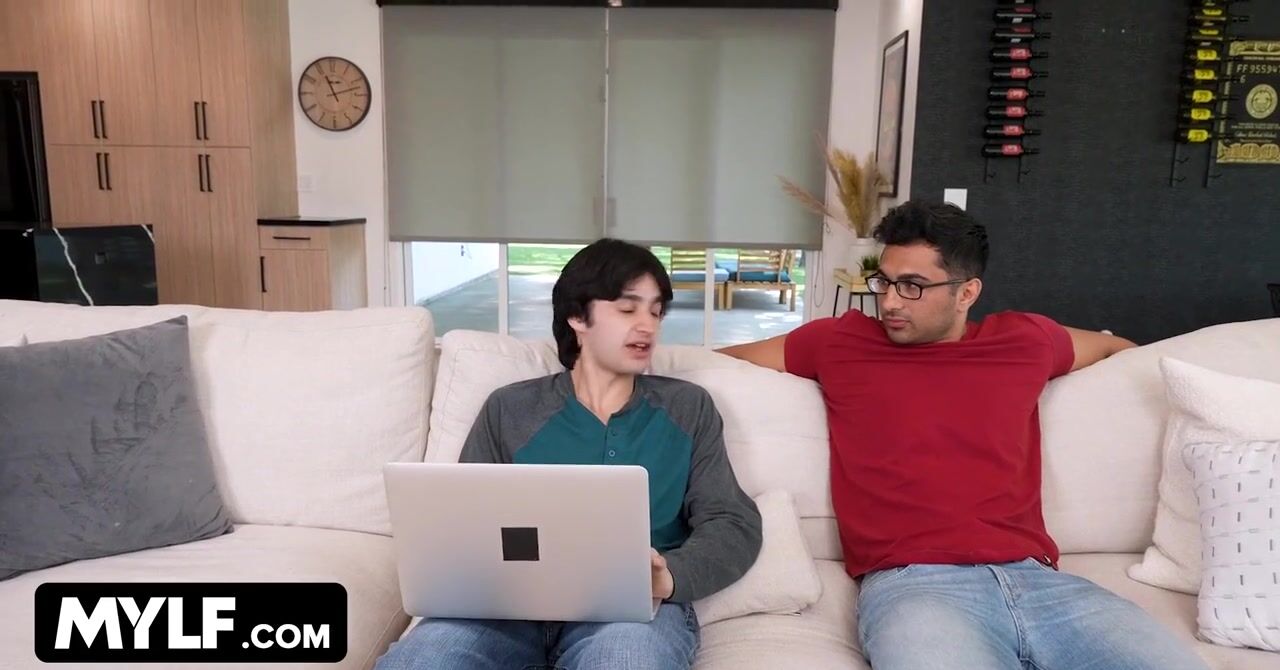 «Худенькая мачеха с маленькими сиськами примеряет перед пасынком розовое бельё, показывая как оно сидит на её теле. Стройная бестия замечает, что за ней в это время ещё и друг пасынка подглядывает. Она дает пацану вылизать свою пизденку и делает ему качественный минет. Вскоре к ним подключается товарищ пасынка, которому она тоже отдается в пизду. Опытная развратница прекрасно проводит время с двумя молодчиками.»