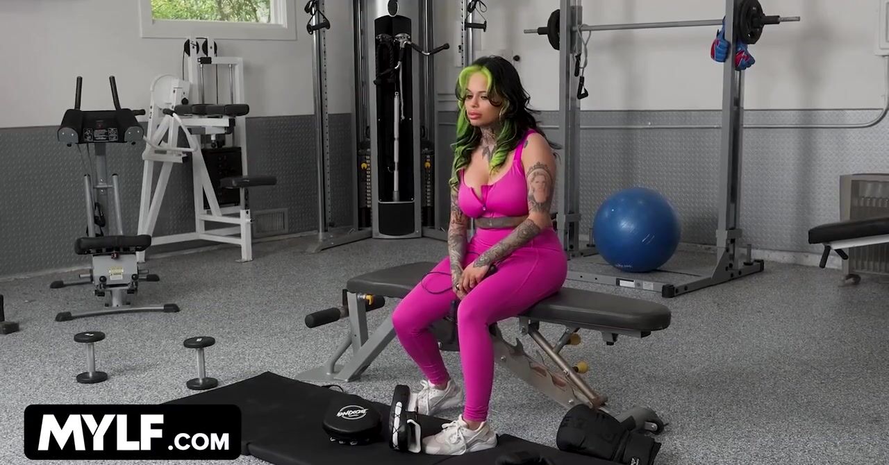 «Сочная милфа с татуировками на теле хочется сбросить пару кино и привести тело в форму, но вот делать упражнения ей совсем не хочется. Поэтому тренеру приходится подобрать правильную методику тренировок. Татуированной бестии с большой жопой и сиськами нравится секс, поэтому мужик решает её выебать как следует. Уже на члене она начинает вести себя более активно, тут-то бестия даже прыгать начинает и резво вертит попой.»