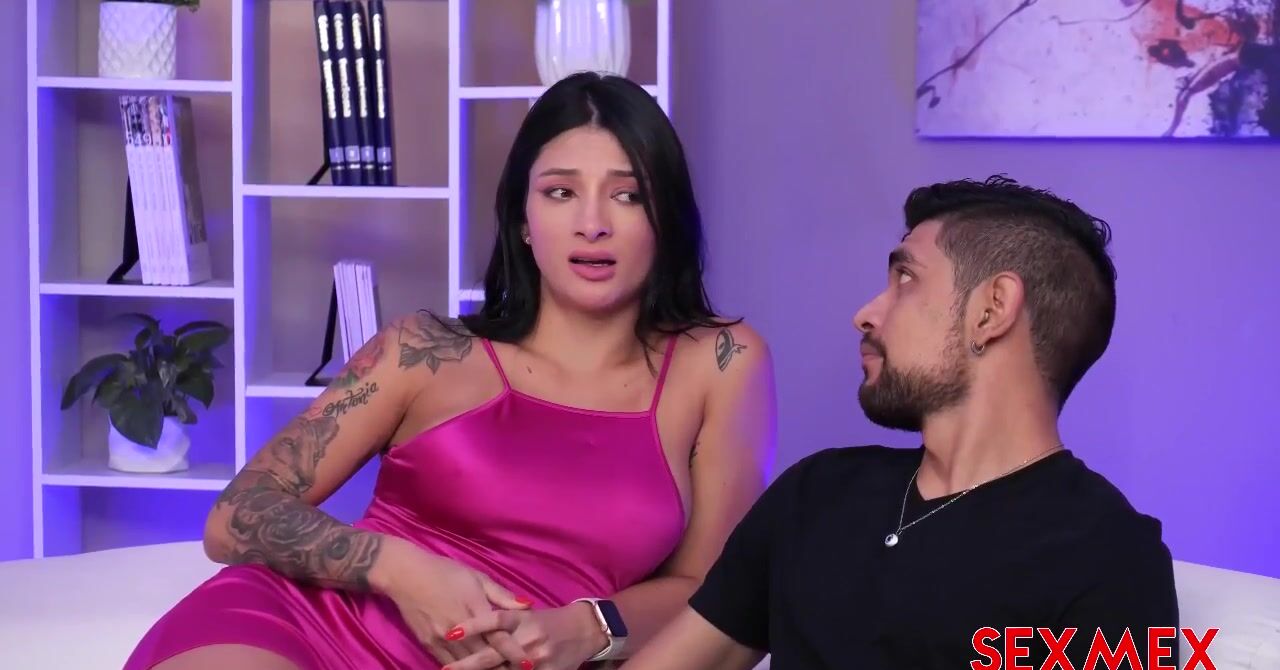 «Муж оставляет жену с любовником, чтобы та с ним занималась сексом. Привлекательная телка в обтягивающем платье время не теряет, она достает пенис любовника и принимается ему делать минет на диване. Вскоре бестия наслаждается и ответными оральными ласками, он вылизывает её писю. Фигуристая бестия прекрасно провела время, наслаждаясь изменой. Она получила оргазм и сперму на лицо. Уже вскоре она изменяет супругу снова.»