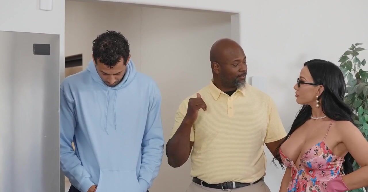 «Негр вносит в дом миниатюрную белую телку, которая спряталась в ящике, чтобы никто не знал, чем парень будет заниматься с ней в спальне. Развратная проказница с кайфом взялась сосать большой черный член, а потом отдалась в попку. Их за межрасовой еблей застала грудастая мачеха чернокожего пацана, которая тоже завелась и присоединилась. Теперь молодчик отжарил в задницу не только молодую крошку, но и опытную милфу.»