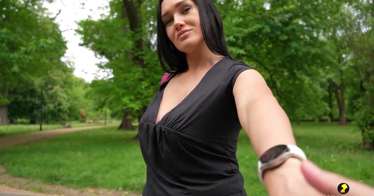 «Привлекательная милфа заприметила молодого парня в парке, с которым решила заняться сексом. Она познакомилась с пацаном и повела его к себе, чем изрядно смутила молодчика, но он не отказался, а последовал за опытной женщиной. У себя дома черноволосая бестия разделась, показывая сочную попку и натуральные сиськи. Далее зрелка сделала гостю смачный минет и отдалась ему в бритую писю на кровати, получая удовольствие.»