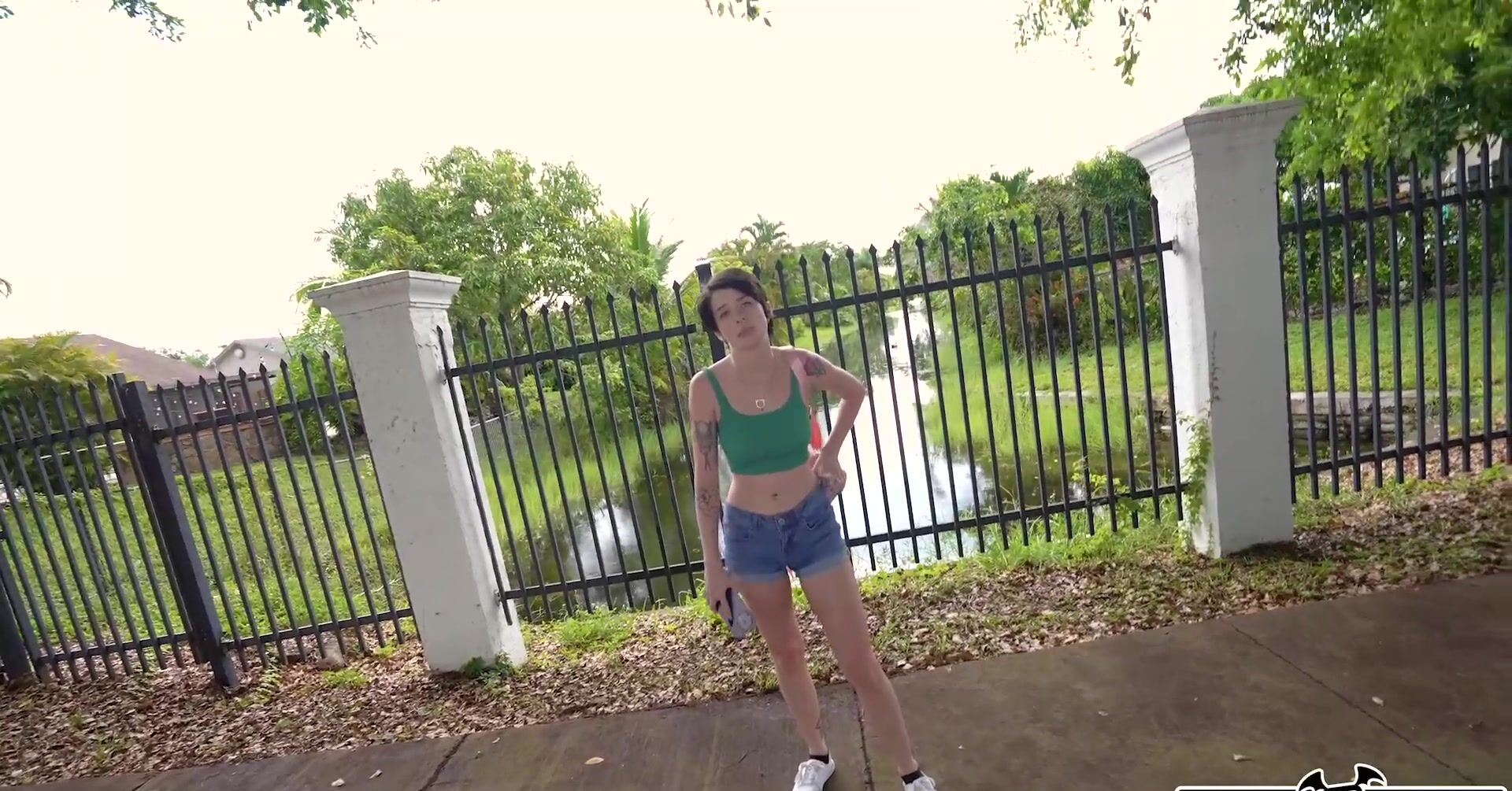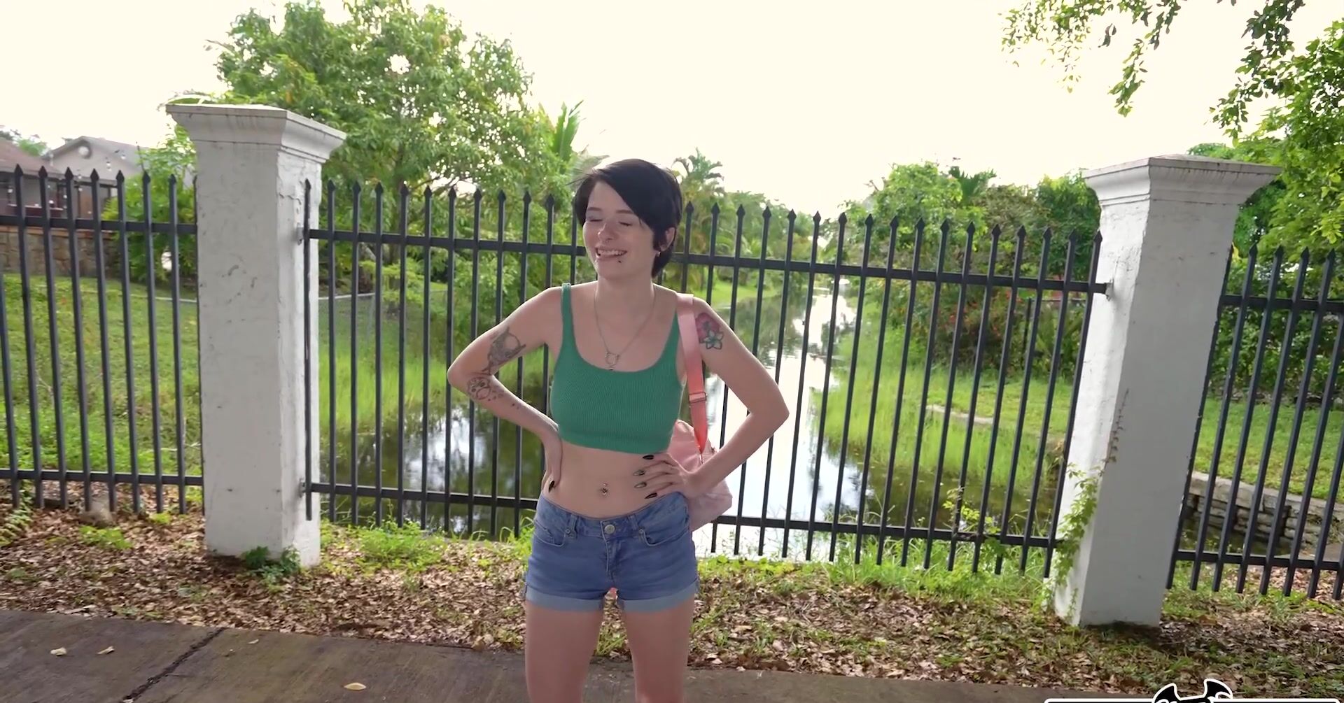 «Милая худышка Kitty Lynn с татуировками на теле и пирсингом на лице возвращалась домой, но тут возле неё остановился фургон. Негр предложил стройной девчонке большую сумму денег за секс с ним. Девчонка не смогла упустить такую возможность, уже в машине она показала своё соблазнительное тело во всей красе и отдалась чернокожему самцу с большим членом. Она получила удовольствие как он минета, так и от секса.»