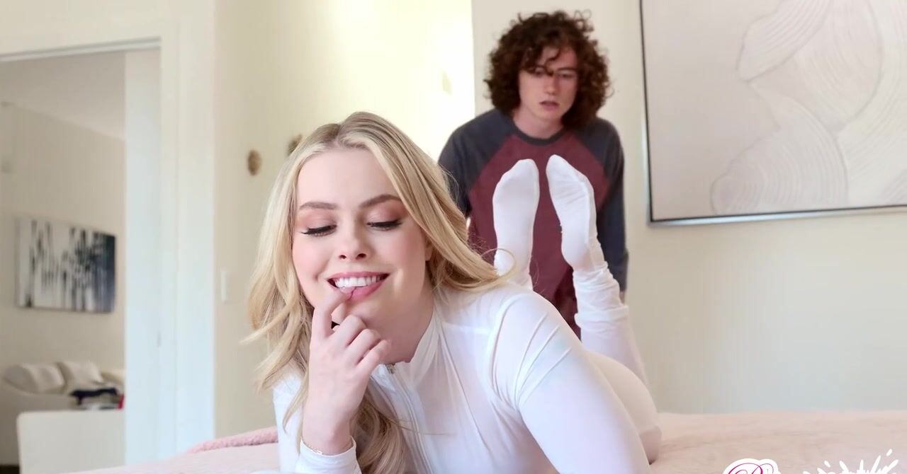 «Миленькая сестра уже пыталась соблазнить кудрявого брата на секс, но тогда у неё ничего не получилось. Сейчас же белокурая крошка надевает белый костюм с разрезом между ногами и лежит в нем на кровати. Хитрая проказница стала ловить братика на живца и уже вскоре получила желаемое. Пацан увидел её упругую киску и попку и подкрался к девке сзади, вставив пенис в её щелку. Довольная крошка ещё и минет ему сделала.»