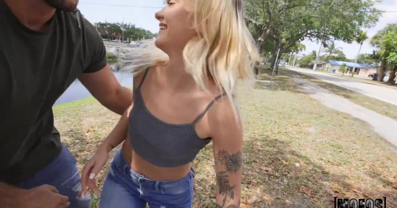 Мужик находит миниатюрную телку в парке и разводит её на секс