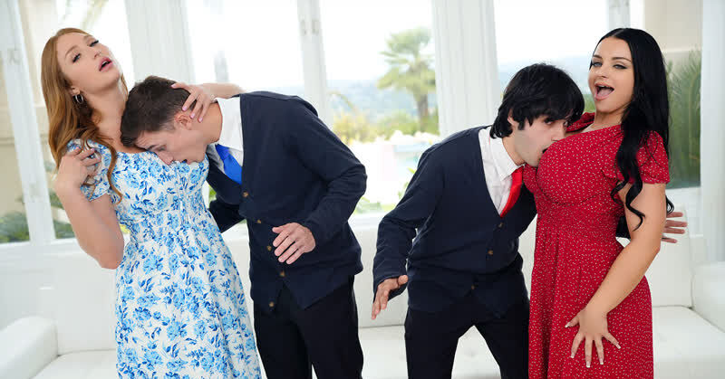 «Лучшие друзья одеваются для выпускного и выглядят в костюмах очень даже привлекательно. Их мачехам очень нравится образ пасынков, они даже возбуждаются от их внешнего вида. Мамочки предлагают заняться сексом. Паренькам такая идея нравится, они с удовольствием угощают их членами и трахают зрелых проказниц. Сочные бестии наслаждаются групповым сексом по полной программе и просят украсить их лица спермой.»