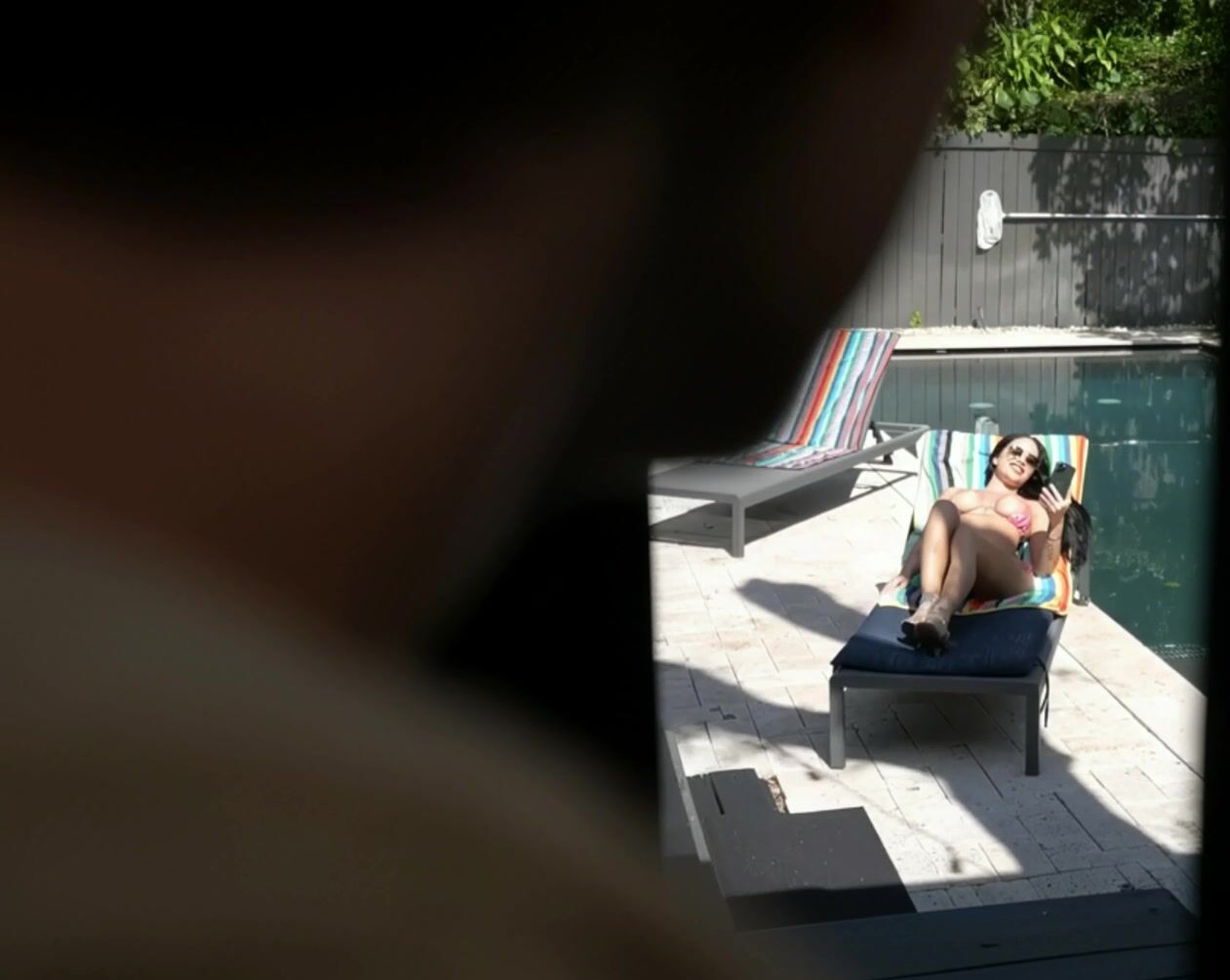 Раскрепощенная сестра вываливает сиськи у бассейна и отдается брату