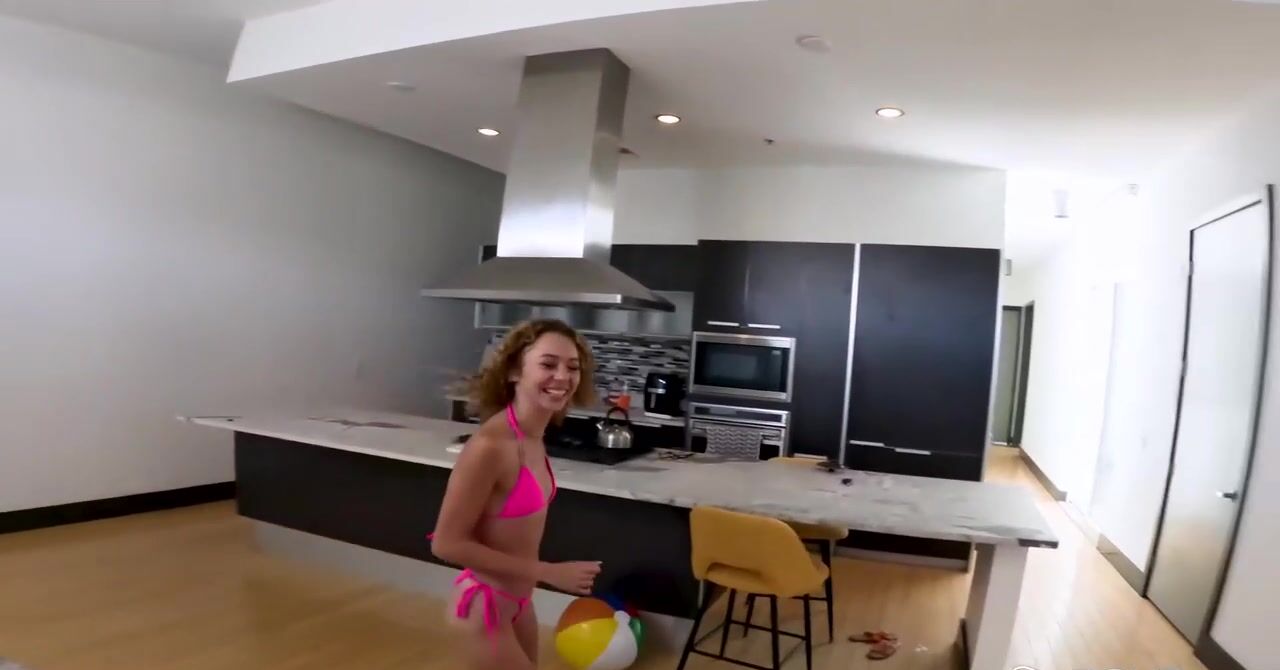 «Веселая блондинка Allie Addison с кудрявыми волосами сводит мужика с ума. Изначально она бегает по дому в нижнем бельё, а потом снимает его и увлажняет своё худенькое тело маслом, что выглядит нереально сексуально. А далее проказница уже берет в ротик толстый член мужика, чтобы сделать смачный минет. Во время оральных ласк она смотрит в глаза парню и выглядит это нереально возбуждающе. Трахается худышка тоже страстно.»