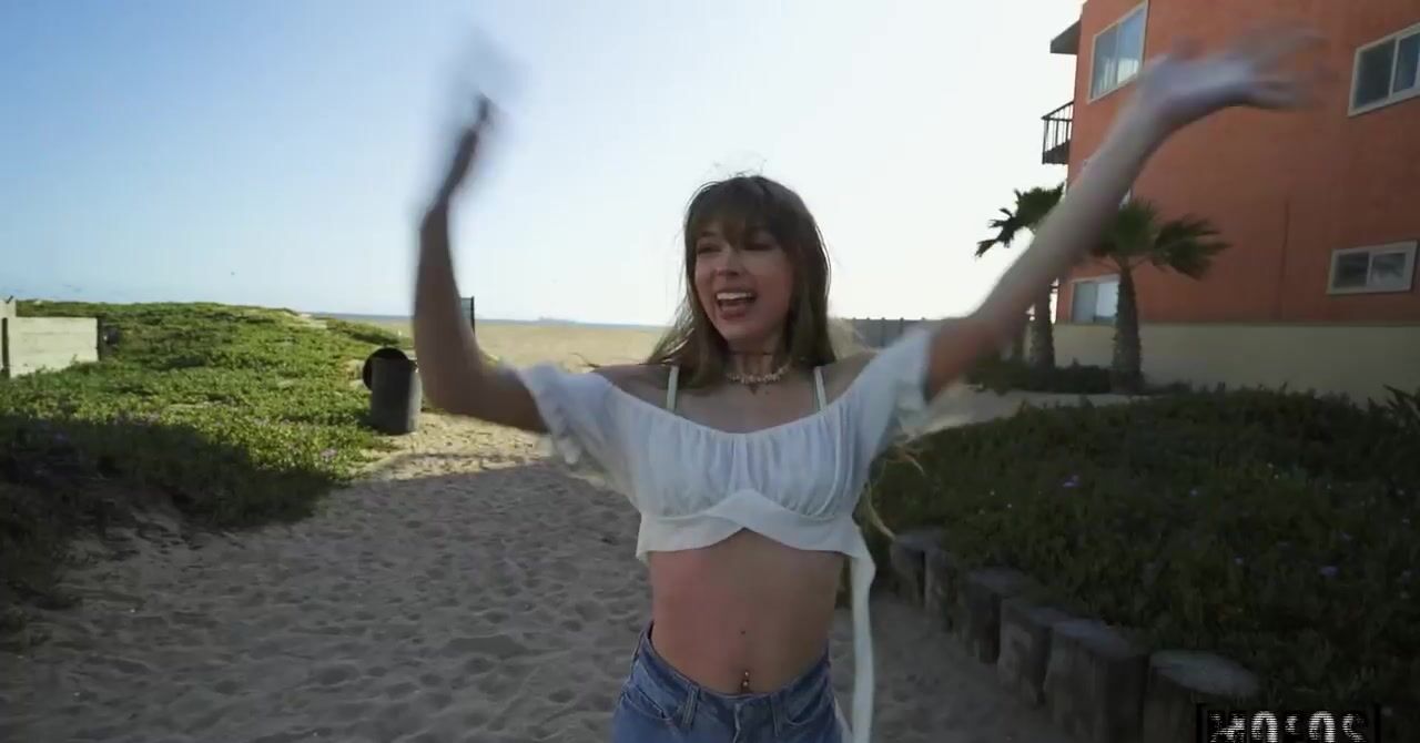 Милая подруга на пляже соблазняет приятеля на секс