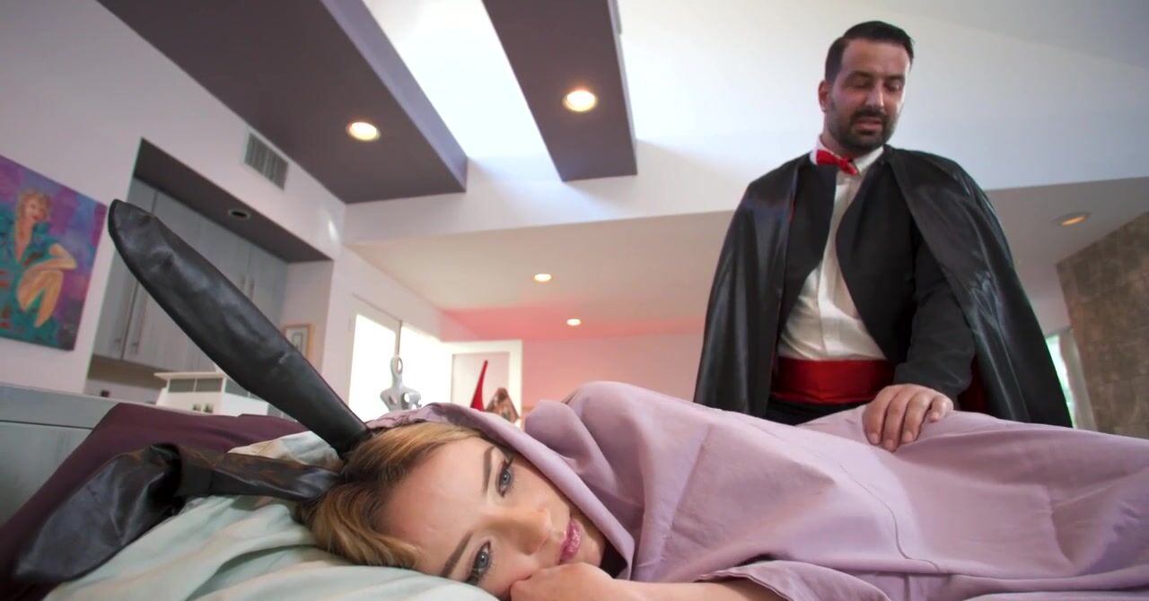 «Фокусник показывает фокусы и демонстрирует привлекательной помощнице как в её упругой попке пропадает крепкий член. Такая магия белокурой крошке нравится, девка в образе кролика развлекается после представления и получает нереальное удовольствие. Кроме того, стройная развратница с маленькими сиськами ещё и глубокий минет делает. Она смачно отсасывает крепкий фаллос и наслаждается половым актом по полной программе.»