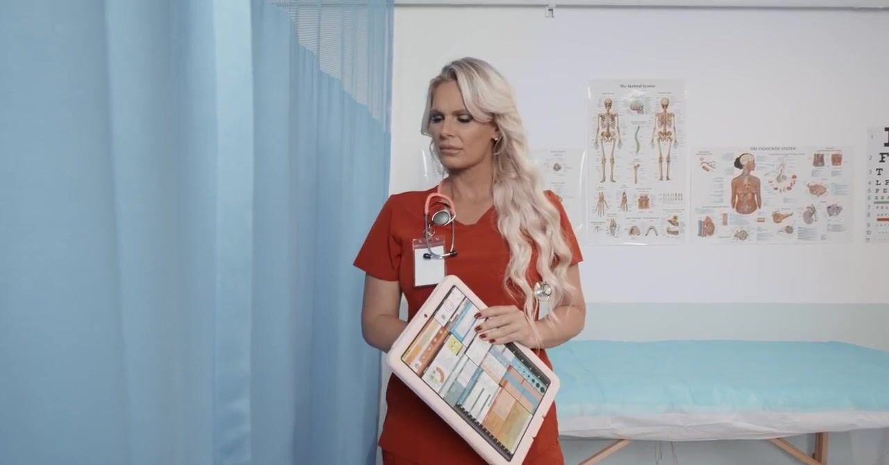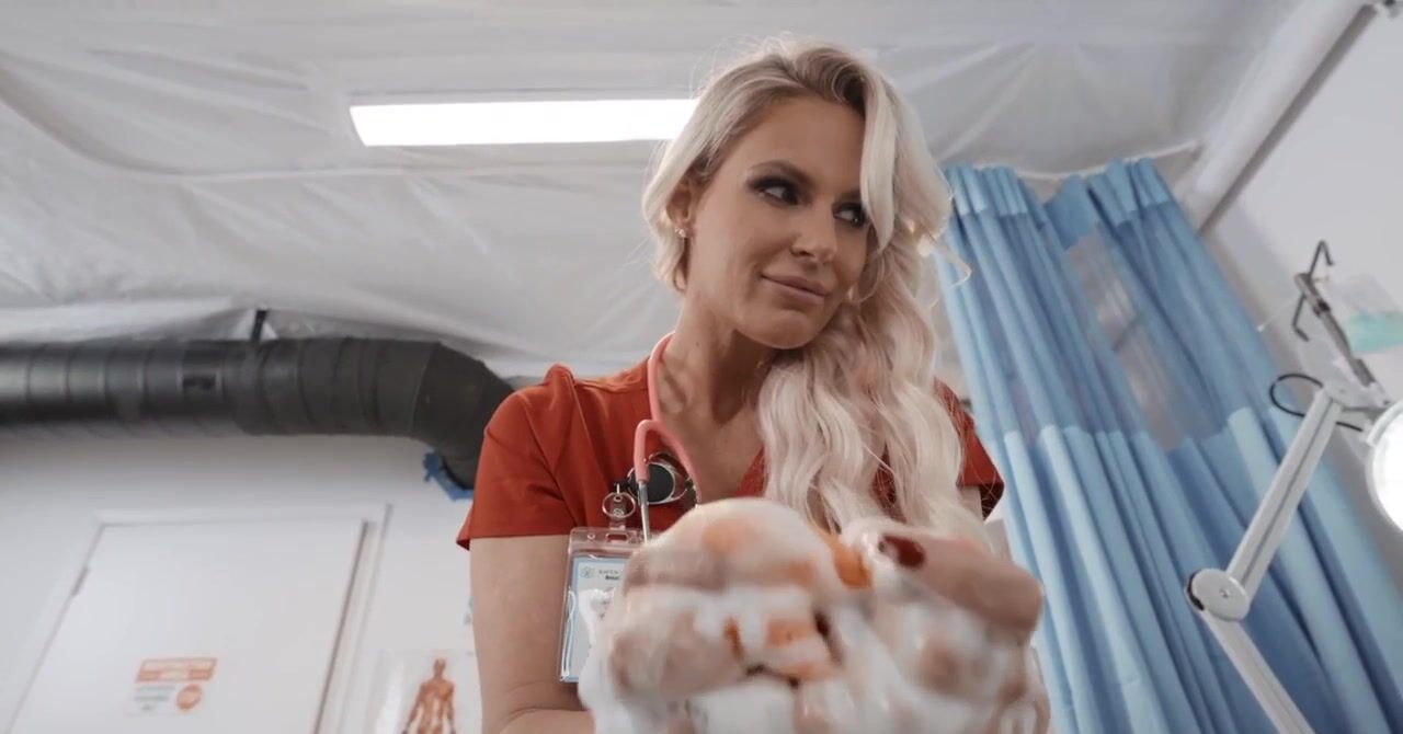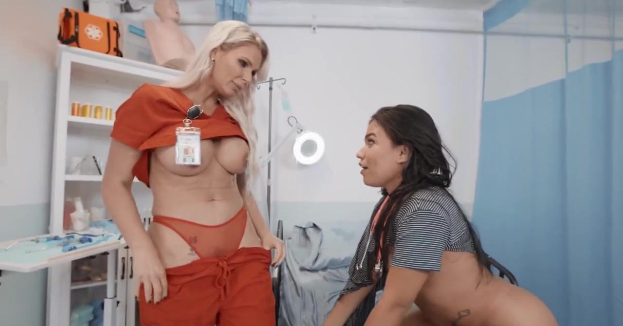 «Белокурая медсестра в зрелом возрасте является лесбиянкой, поэтому она так возбуждается, когда приходится мыть тело миниатюрной пациентки. Блондинка с силиконовыми сиськами особенно заботливо натирает пизду привлекательной девицы. Вскоре её сексуальное желание становится таким сильным, что милфа не выдерживает. Она принимается вылизывать пилотку брюнетки, а так же засовывает в её вагину пальцы ног.»