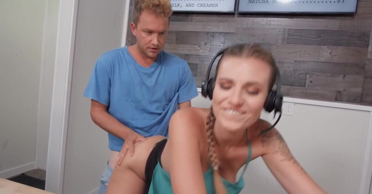 Красотка работает в кофейне и занимается сексом с гостем