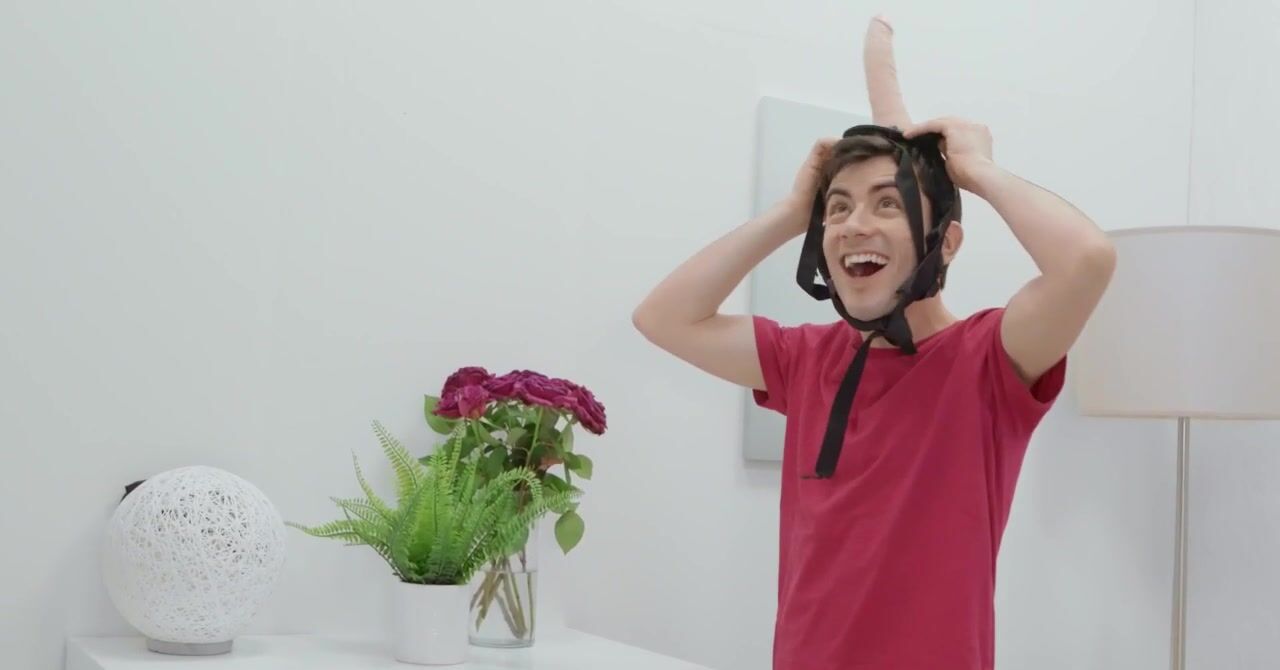 «Шутник находит страпон в вещах рыжей подруги и надевает его на голову, считая это веселым. За этим занятием его и застает стройная подруга в зеленом белье. Худышка недовольна поведением приятеля, она отодвигает трусы и приказывает ему вставлять искусственный пенис в бритую киску, что чувак принимается делать. Вскоре чувак ещё и своим членом пользуется. Трахает он бестию в обе дырочки, доставляя ей нереальный кайф.»