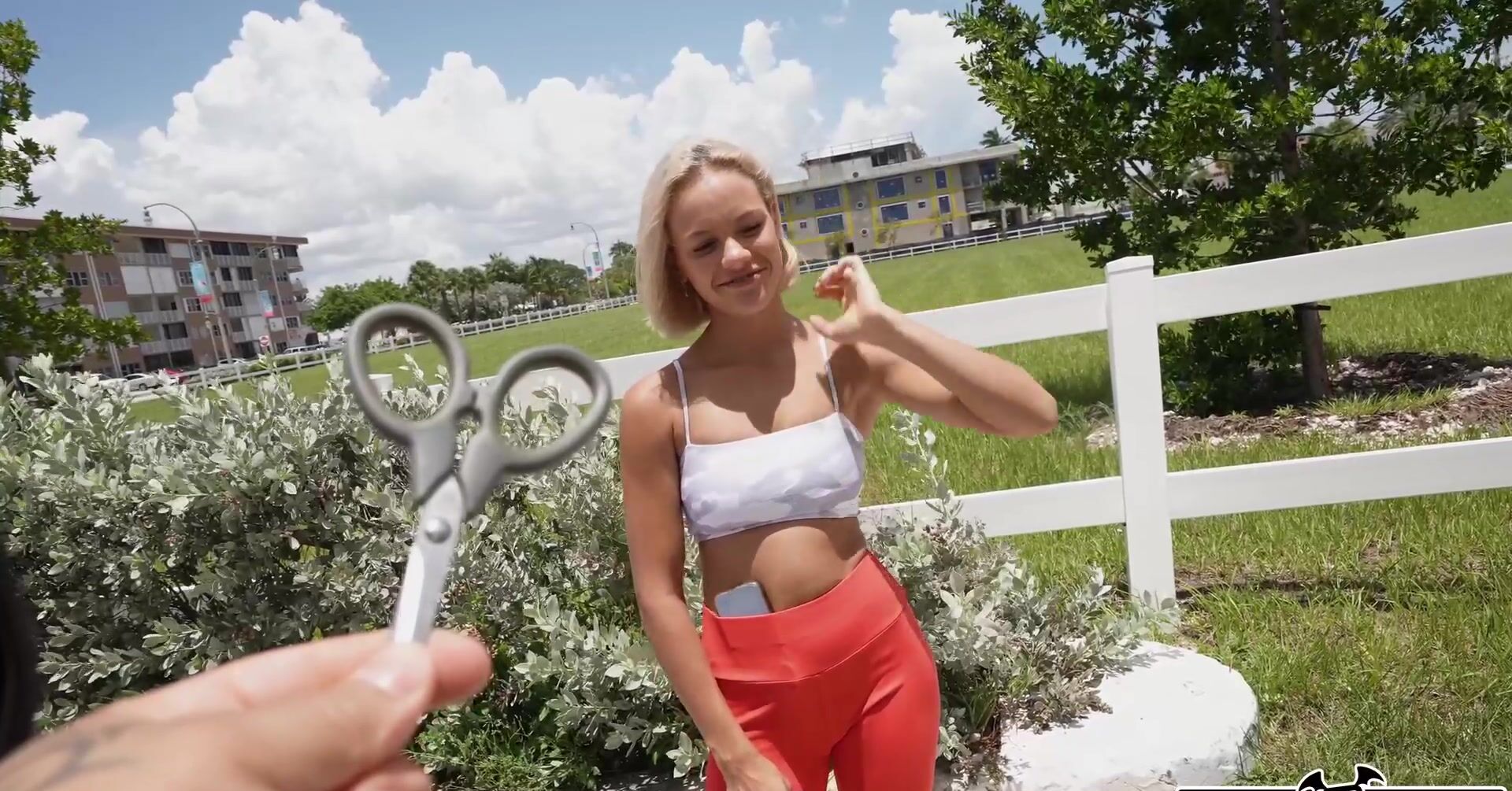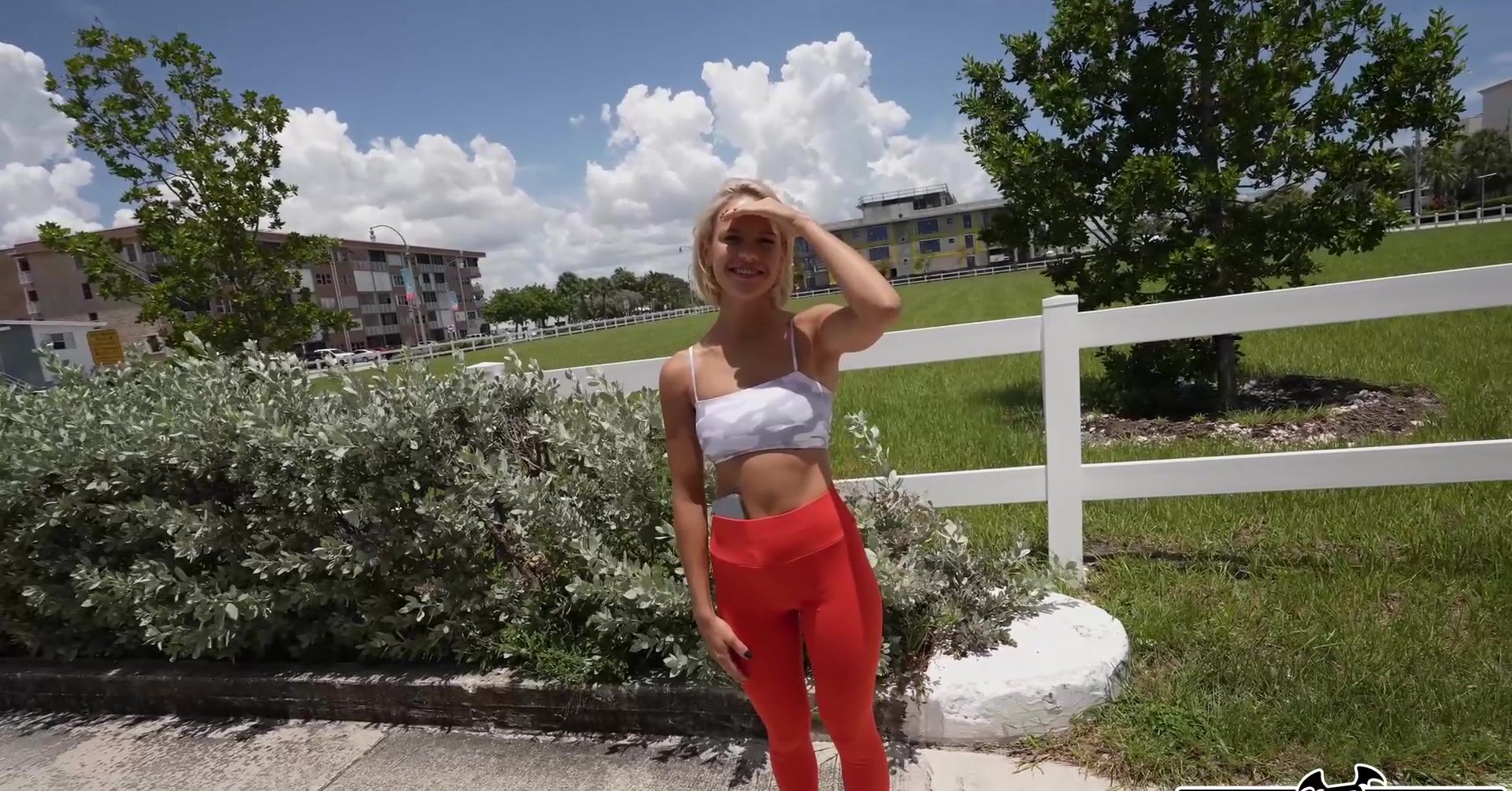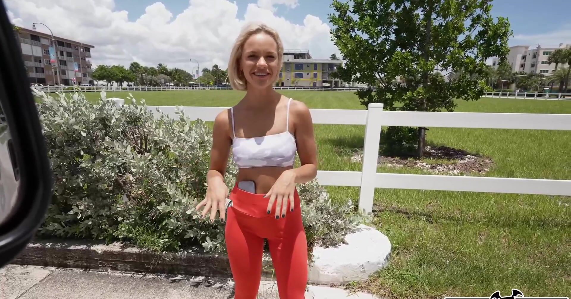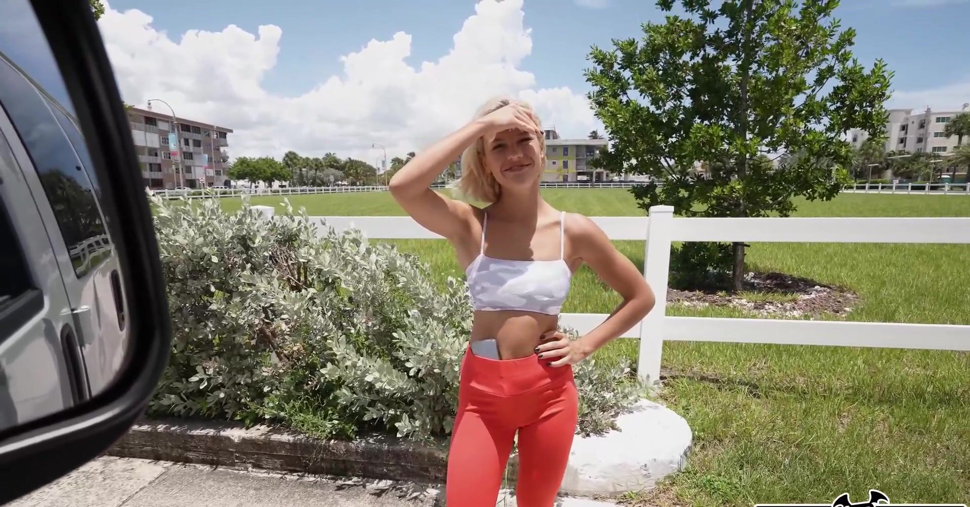 «Белокурая милашка в лосинах и толе собиралась бегать, но незнакомый парень предложил лучше заняться сексом в машине. Блондинка согласилась, что качественная ебля будет приятнее и полезнее, чем бег. Поэтому она запрыгнула в фургон и стала делать смачный минет, после которого уже насладилась жарким сексом. Молодчик не только хорошо заплатил жаркой проказнице, он ещё и до оргазма её было довел, а сперму спустил на лицо.»