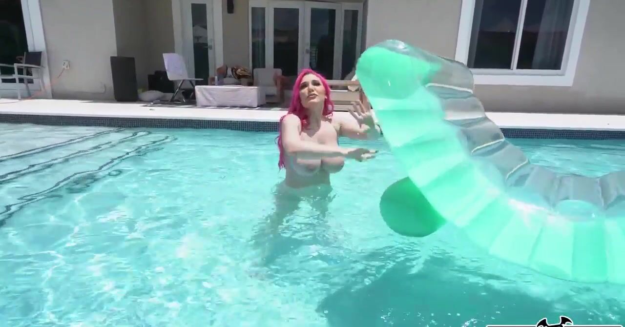 Негр у бассейна трахает большим членом милфу с розовыми волосами