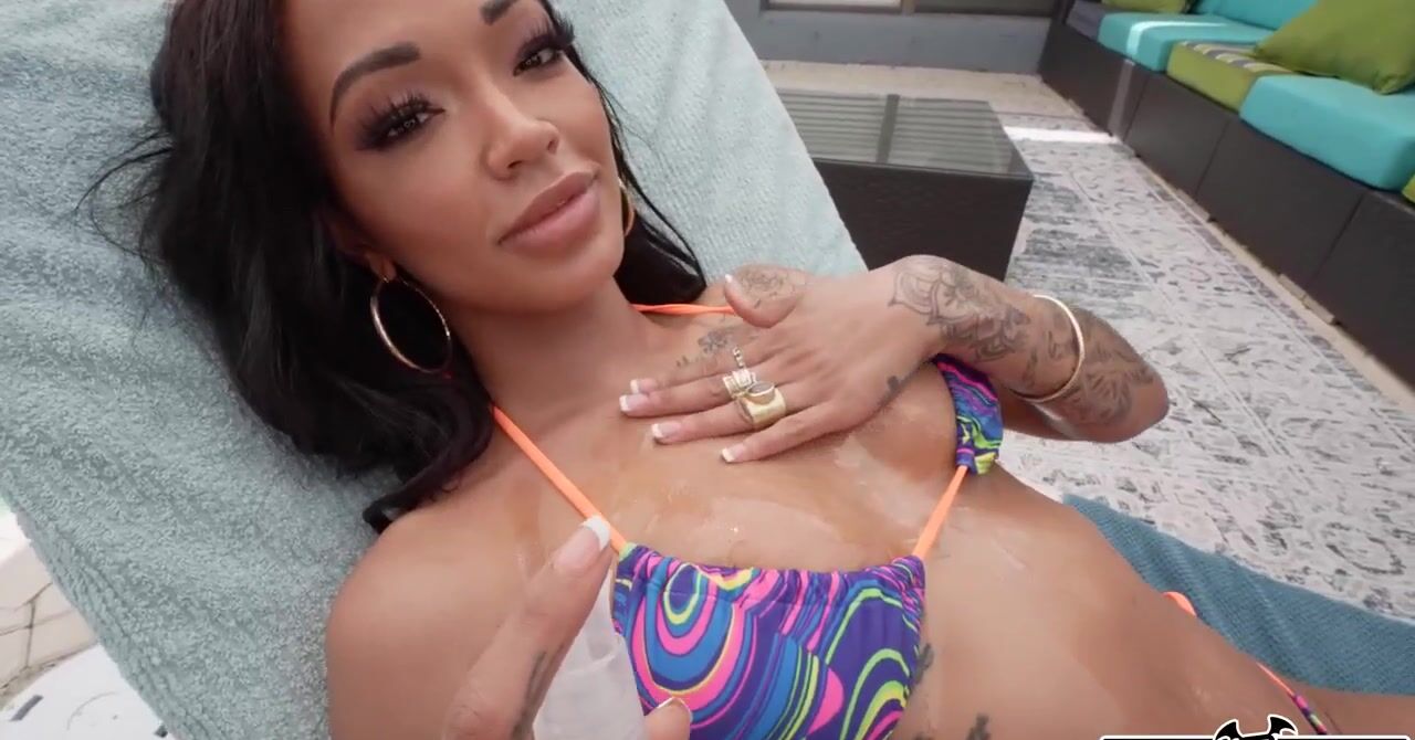 Негритянка в масле жарко ебется около бассейна