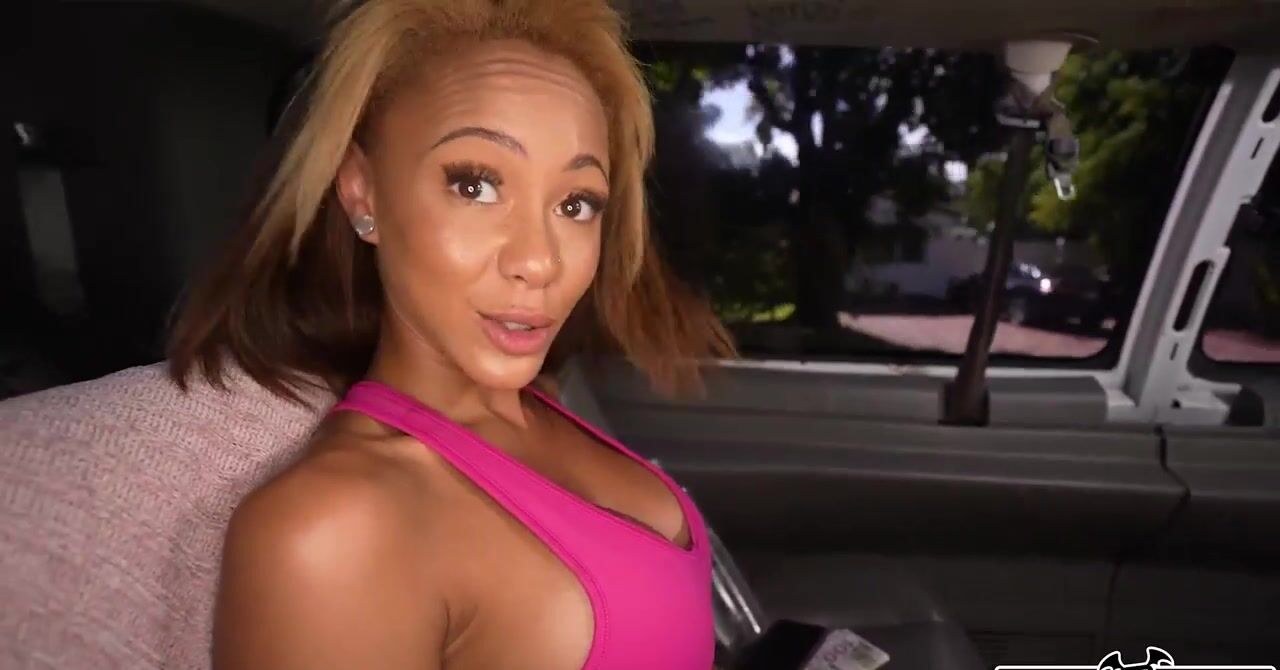 «Рыжая телка занимается спортом на улице и возбуждает пикапера на фургоне. Он пытается познакомиться с худой телкой и предлагает ей заняться сексом в машине за деньги. Загорелая крошка с силиконовыми сиськами соглашается и показывает своё шикарное тело. Уже вскоре девка принимается сосать хуй и ласкает хер своими грудками, а потом отдается в пизду. Она получает нереальный кайф, ощущая себя шлюшкой.»