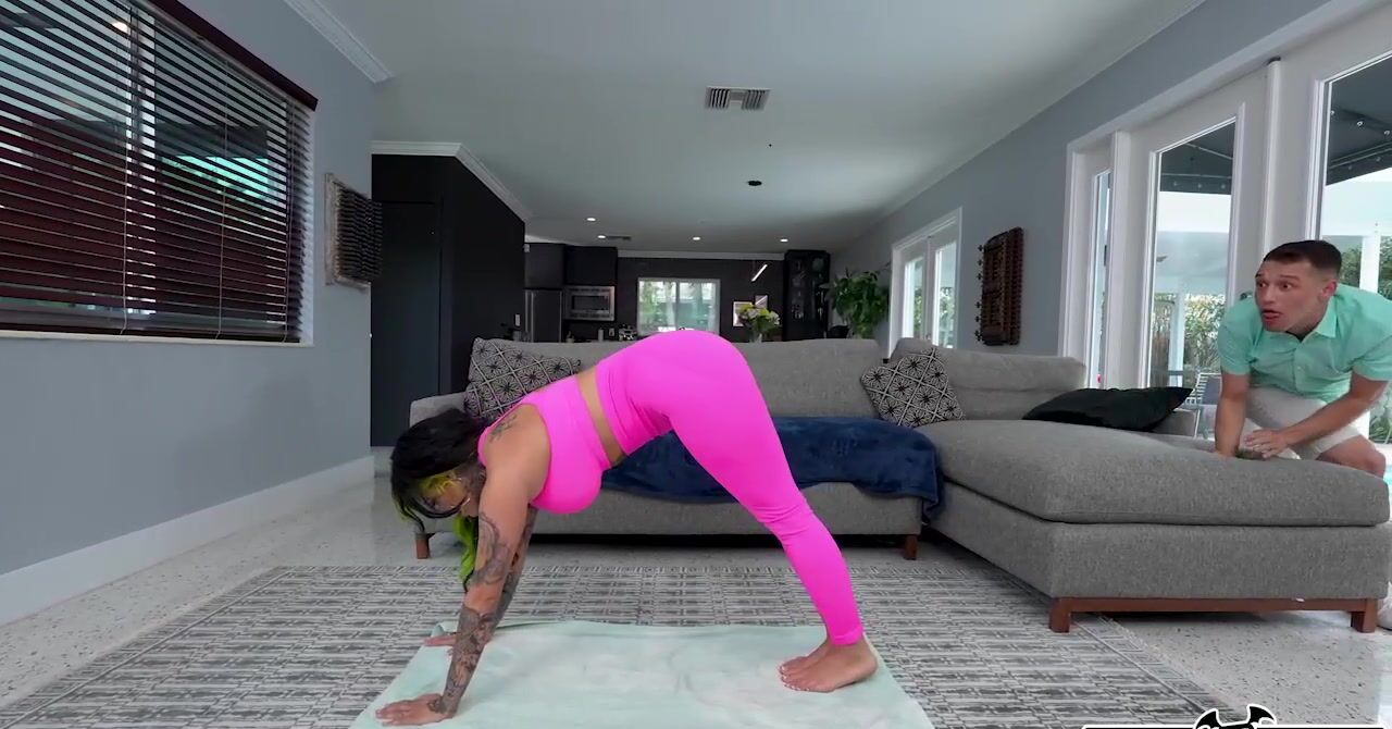 «Юморной пасынок подшучивает над привлекательной мачехой и иногда показывает ей свой член, что его очень веселит. В какой-то момент зрелая бестия с татуировками на теле не выдерживает, она отдается молодчику в пизду, чтобы тот больше не шутил. Цыпочка с большими красивыми сиськами принимается делать ему глубокий минет и наслаждается вагинальным сексом. Оказывается, что молодой пацан неплохо трахается.»