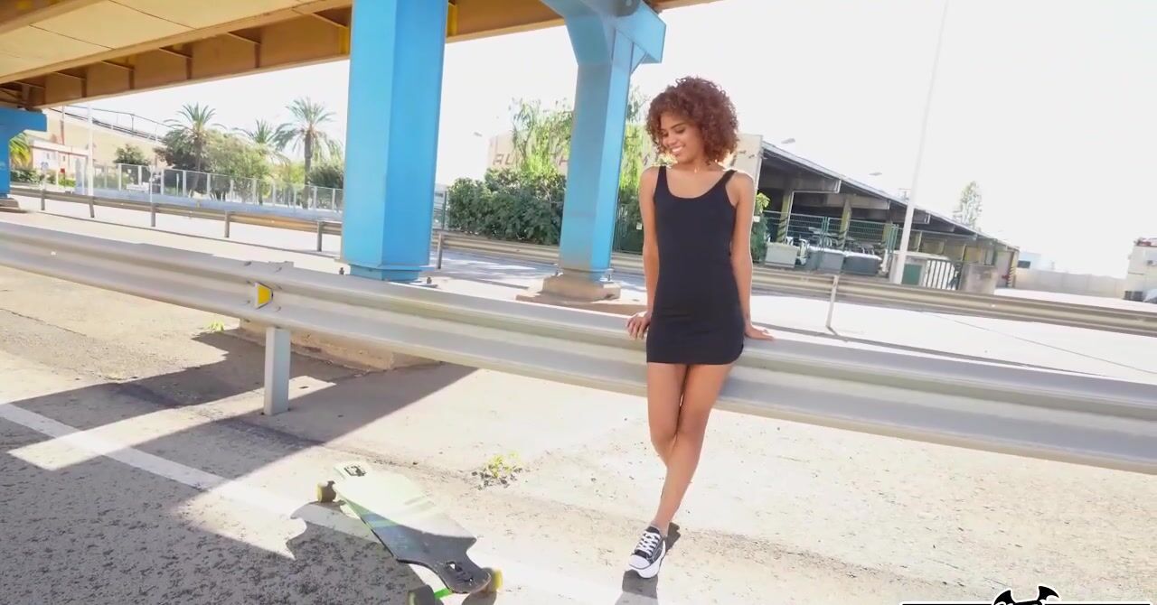 «Рыжая мулатка выходит на охоту. Она ищет на улице дикий секс и вскоре его находит. Стройная крошка с кудрявыми волосами встречает мужика, который соглашается её поиметь в обе дырочки. Как ни странно, но с поиском сексуальных партнеров у девчонки трудности, не каждому парню подходит такая развратная телка, которая точно знает чего хочет. Эта худышка получила желанный кайф, отдавшись в попку и киску на улице.»