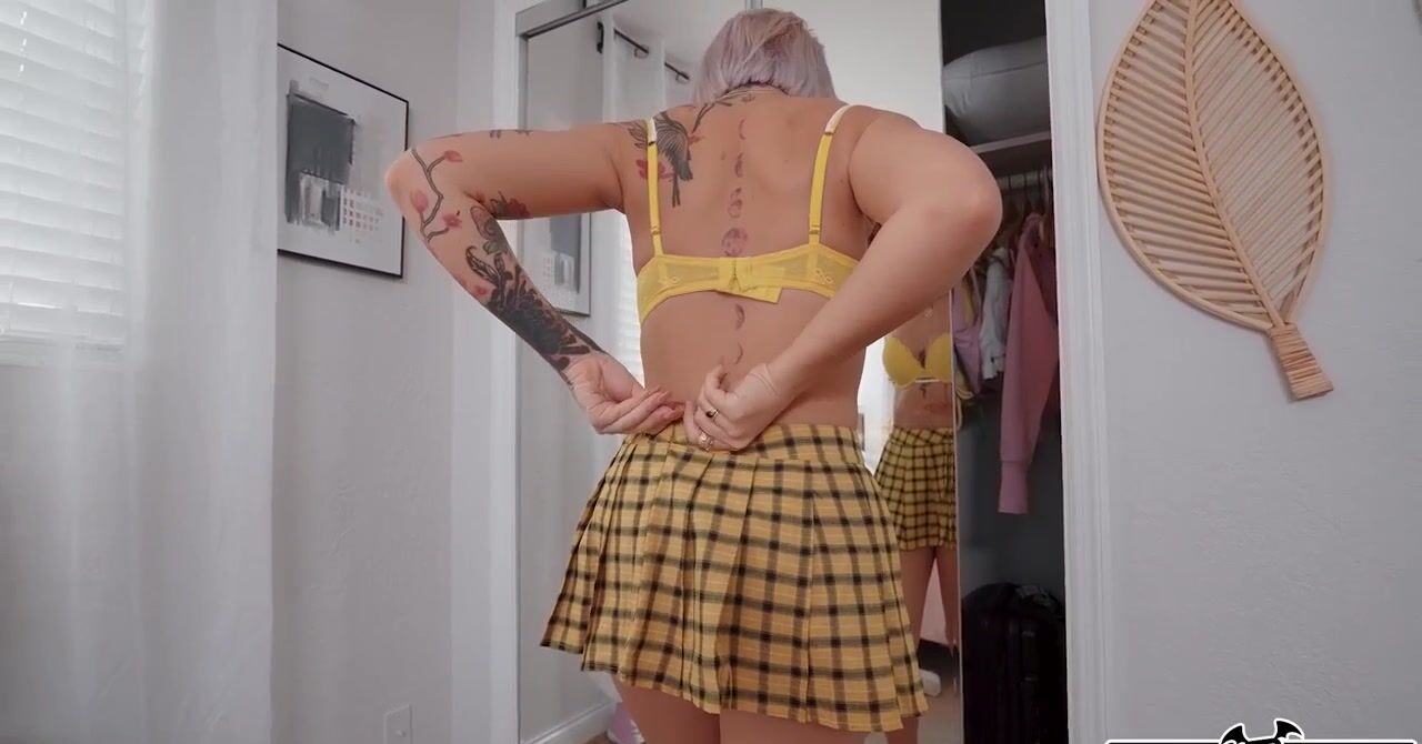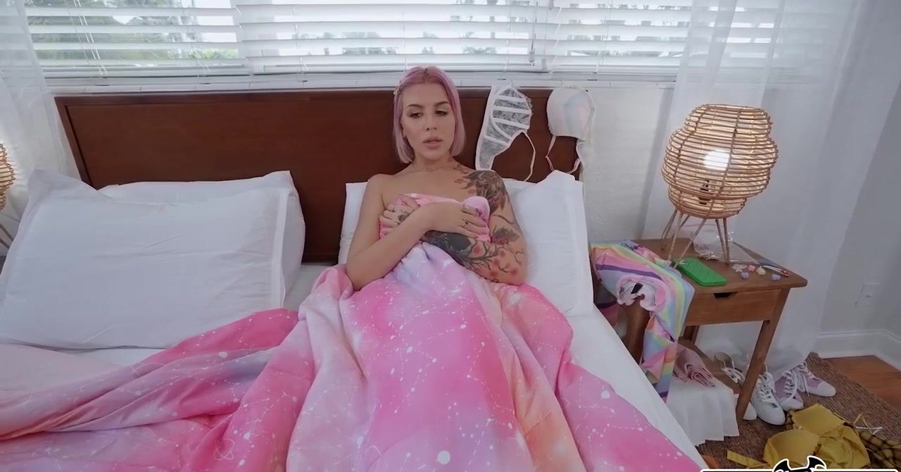 «Пошлая девушка с розовыми волосами очень хочется заняться анальным сексом, поэтому соблазняет приятеля. Изначально эта татуированная проказница раздевается и показывает своё тело, а потом достает пенис молодчика и делает ему качественный минет, смотря при этом в глаза, что нереально возбуждает. Далее игривая бестия уже подставляет попку под хуй и наслаждается тем как твердым фаллос входит в её узенькую дырку.»