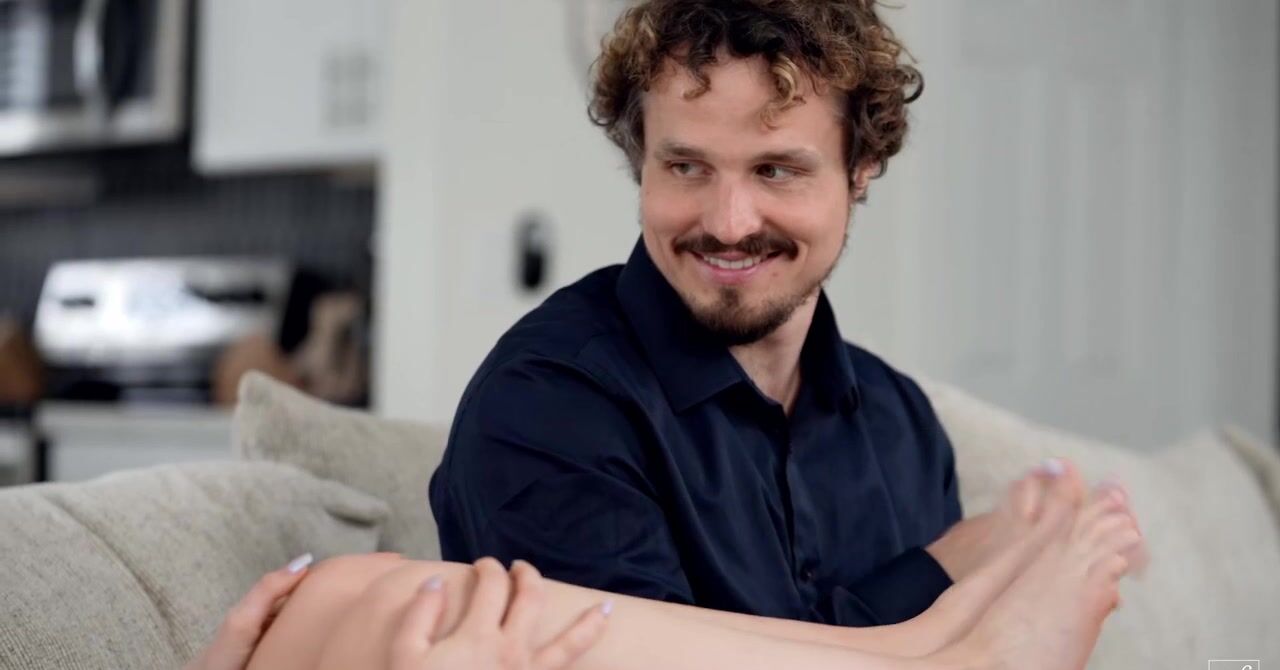 «Милая блондинка Maria Kazi сперва разрешает парню приласкать её красивые ножки, а потом этими же ногами берется ласкать его фаллос. Футфетишиста это нереально возбуждает, он наслаждается мастурбацией, а затем и ротиком белокурой цыпочки, которая сделала ему минет. Далее пара занялась нежным сексом на диване, получив удовольствие. Кончить игривая крошка разрешила ей в бритую пизду. Ей понравилось как сперва вытекла.»