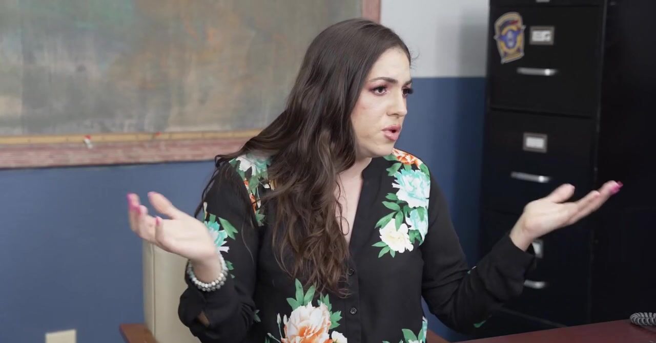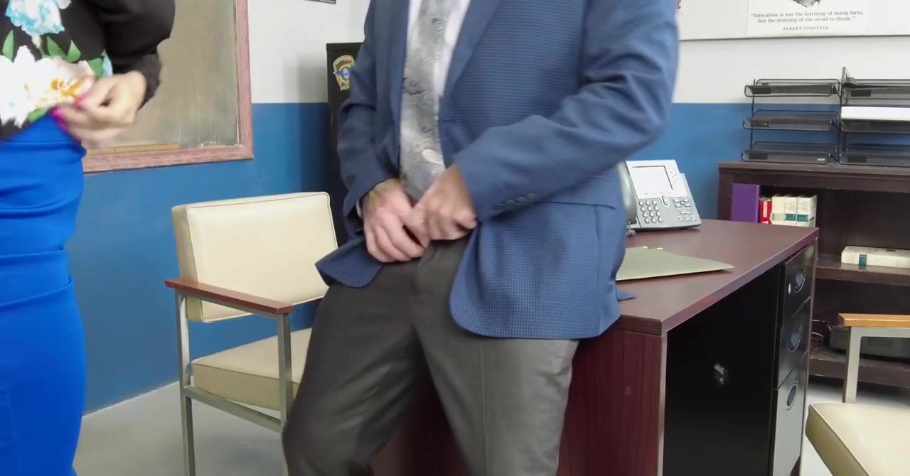 «Наглый директор университета угрожает привлекательной учительнице увольнением, если та не займется с ним сексом. Брюнетке с сочной задницей приходится идти на поводу у похоти мужика. Она опускается перед ним на колени и принимается делать глубокий минет, после чего уже отдается в пизду. Если изначально черноволосая милфа была от такого не в восторге, то постепенно она возбудилась и получила удовольствие.»