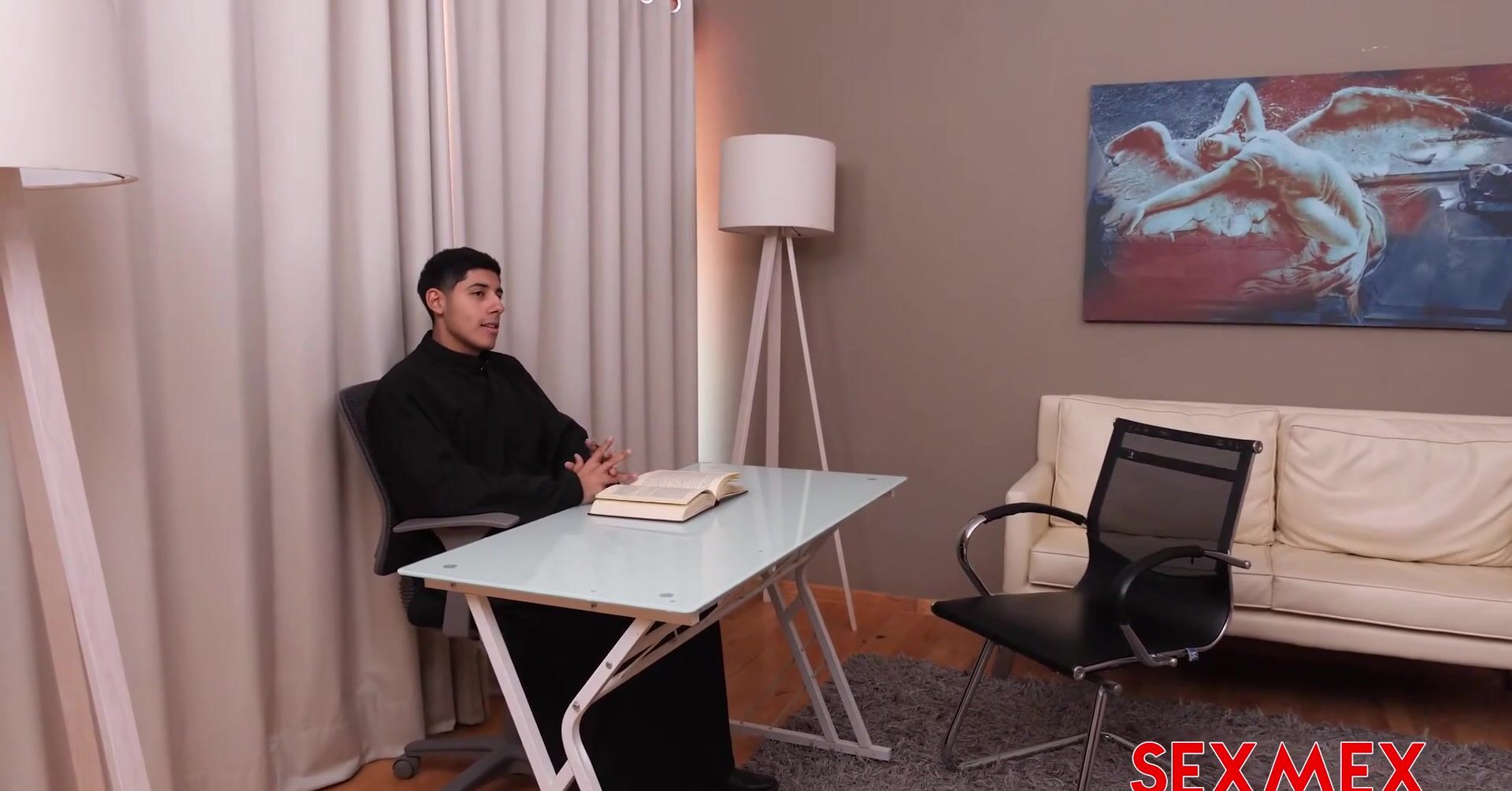 «Красивая девушка приходит к молодому священнику, чтобы исповедаться в грехах. Оказывается, что девчонка была уж очень плохой, она страстно перетрахалась с множеством парней и теперь захотела взяться за голову. Святой отец выслушал брюнетку и заявил, что отпустит грехи только после ебли, ведь клин выбивают клином, а разврат развратом. Для латинки это показалось страстным, но она не стала возмущаться, а взялась сосать хуй священника.»