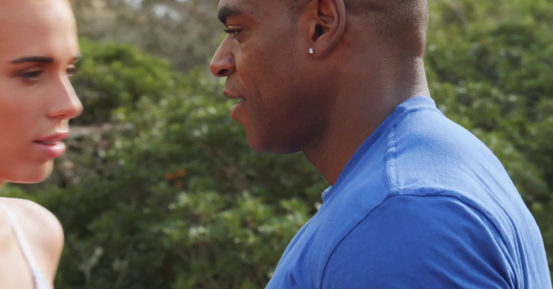 «Рыжая спортсменка каждое утро бегает со своим чернокожим приятелем. Этот парень ей всегда составляет компанию и за это красотка ему благодарна. Сегодня фигуристая крошка предлагает негру расслабиться после бега, она приглашает его к себе, раздевает и ласкает хуй руками, после чего делает минет и отдается в пилотку. Жаркая девчонка наслаждается межрасовой еблей и постанывает от кайфа, насаживаясь на крепкий болт бритой пизденкой.»