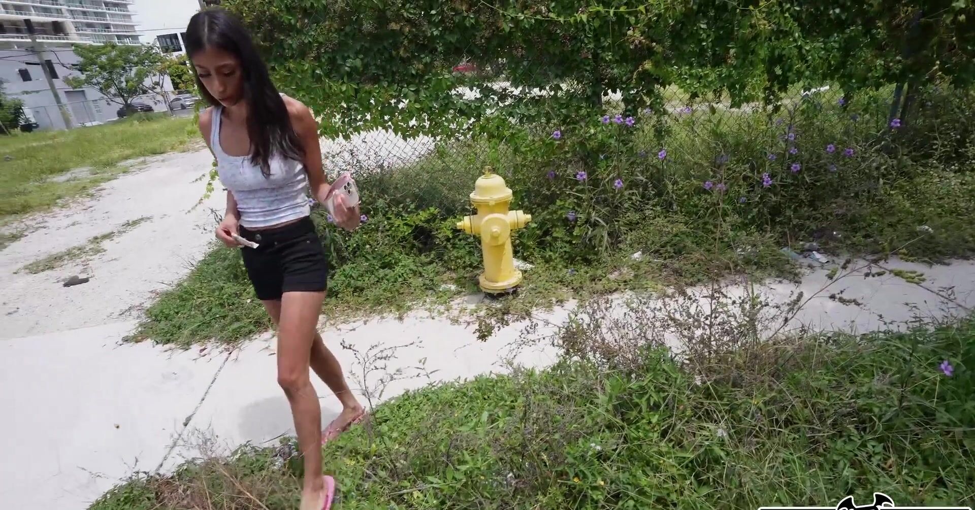 «Стройная мулатка польщена тем, что чернокожий пикапер хочет поиметь именно её за деньги. Девушка немного стеснительная, поэтому и не соглашается так быстро, как негру хотелось бы, её приходится немного поуламывать, но в итоге она всё же сдается и садится в фургон. Там худышка раздевается и показывает стройное тело во всей красе. Девчонка через некоторое время раскрепостилась и прекрасно провела время, кончив от жаркого траха.»