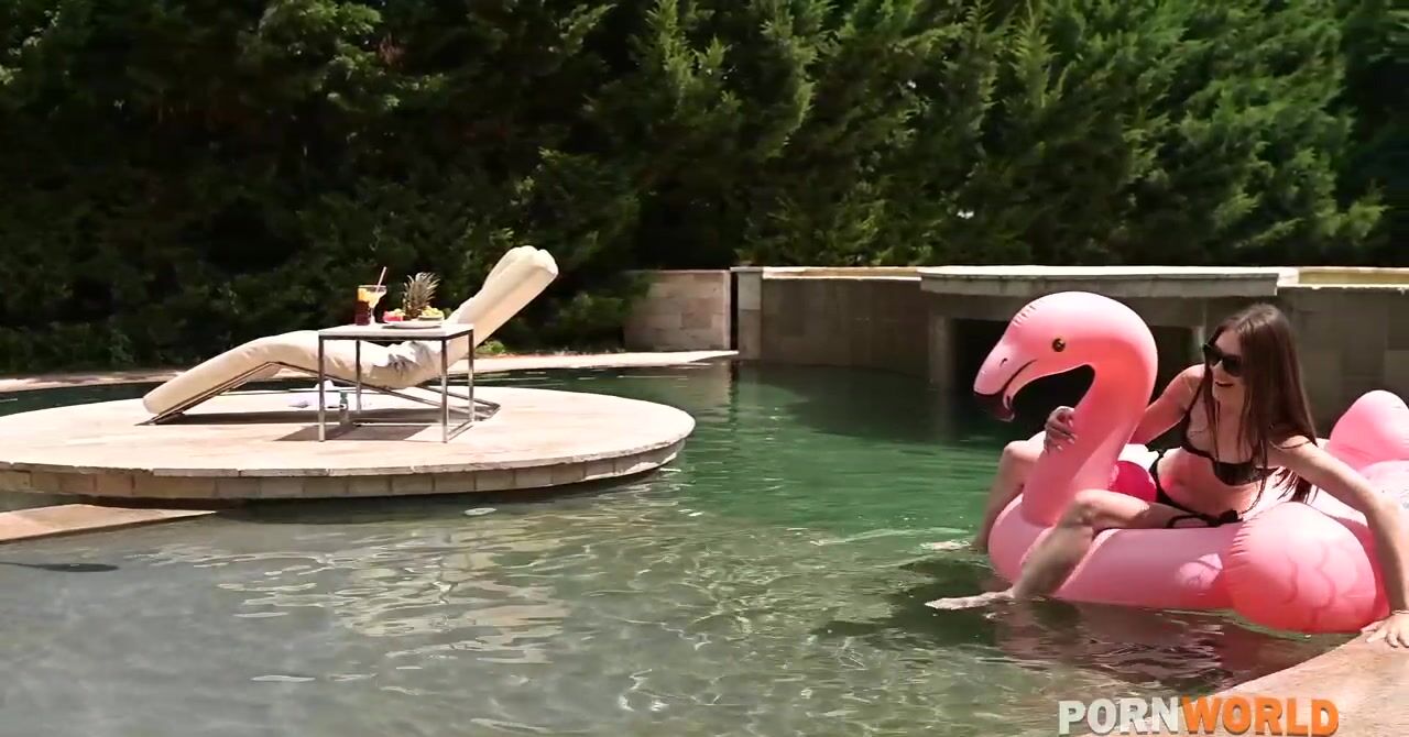 Стройная красотка соблазняет приятеля на анал около бассейна