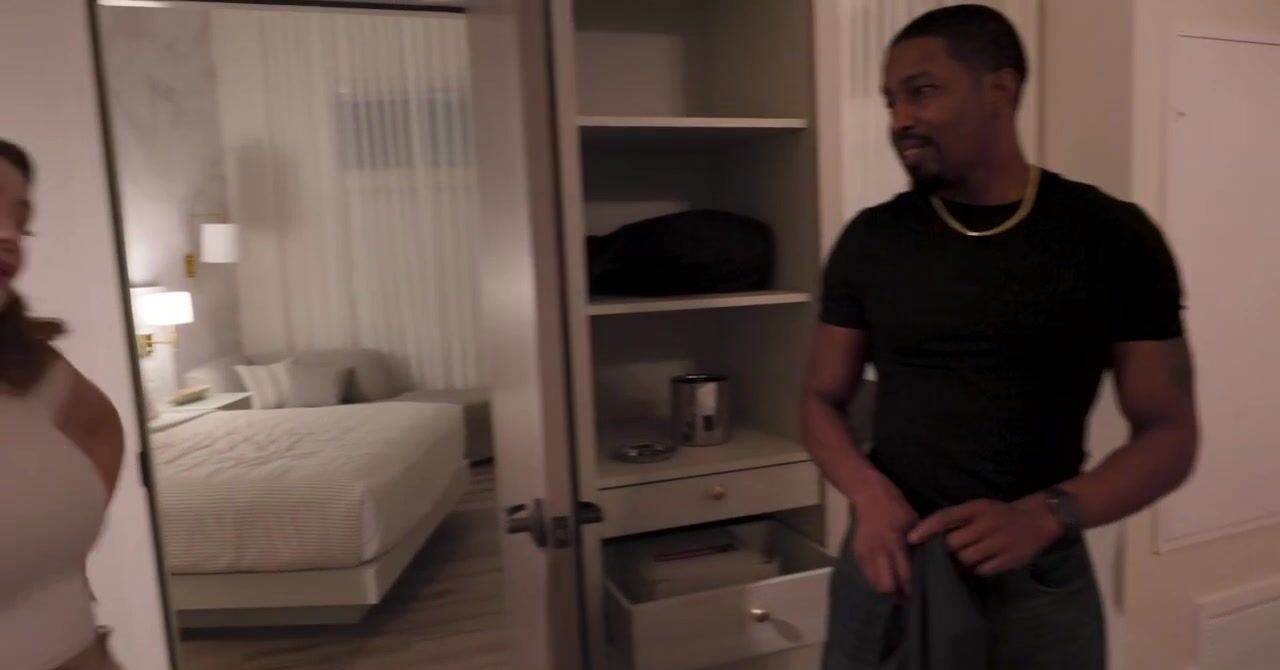 Рыжая телка с сочным телом соблазняет негра на еблю