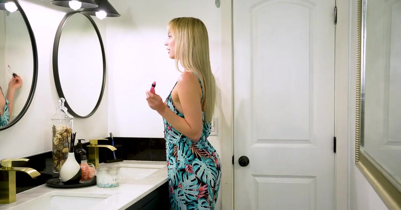 «Белокурая милфа решает соблазнить знакомого парня. Она надевает развратное бельё, которое больше похоже на веревочки. Её лифчик и трусики совсем ничего не прикрывают, поэтому выглядит блондинка действительно безумно соблазнительно. Эта жаркая развратница быстро овладевает членом приятеля, который она отсасывает на кровати. Чел жарко поимел развратницу в разных позах и накончал ей на лицо после ебли.»