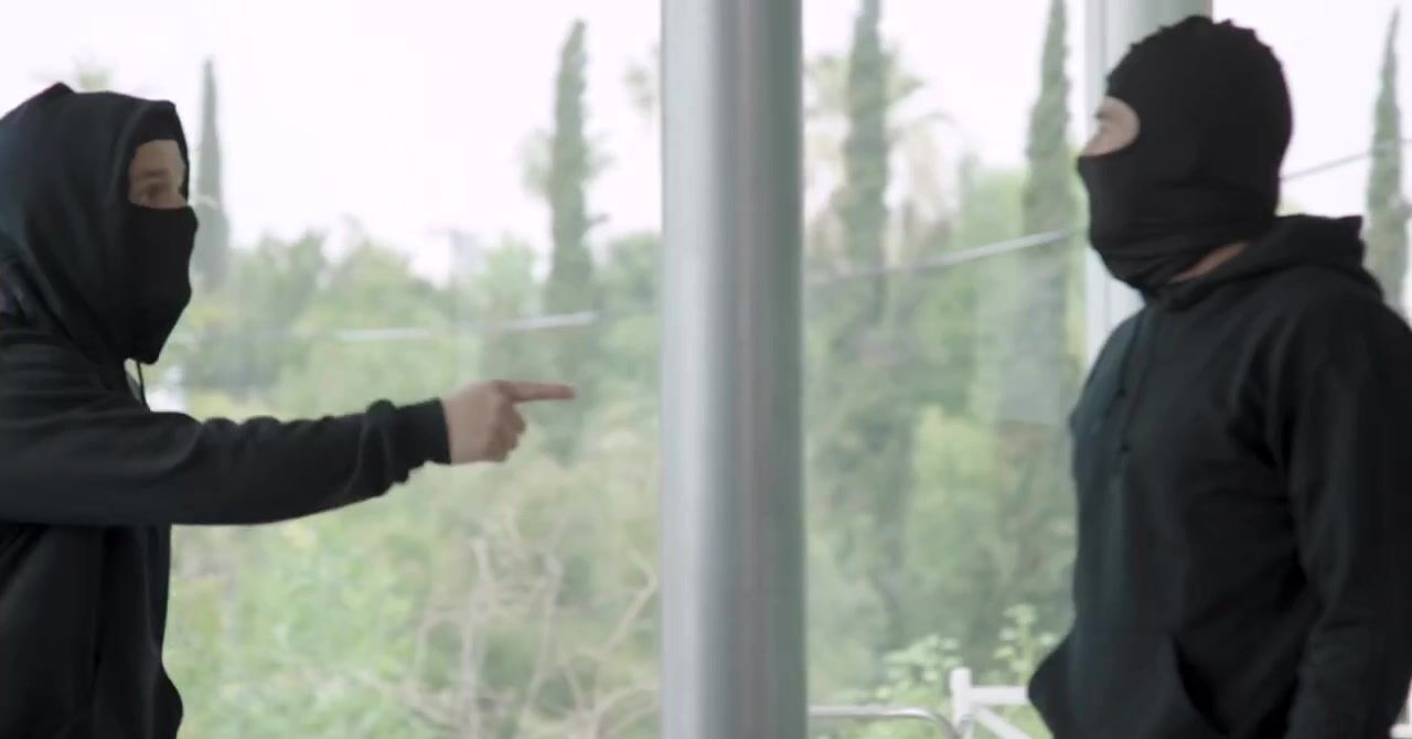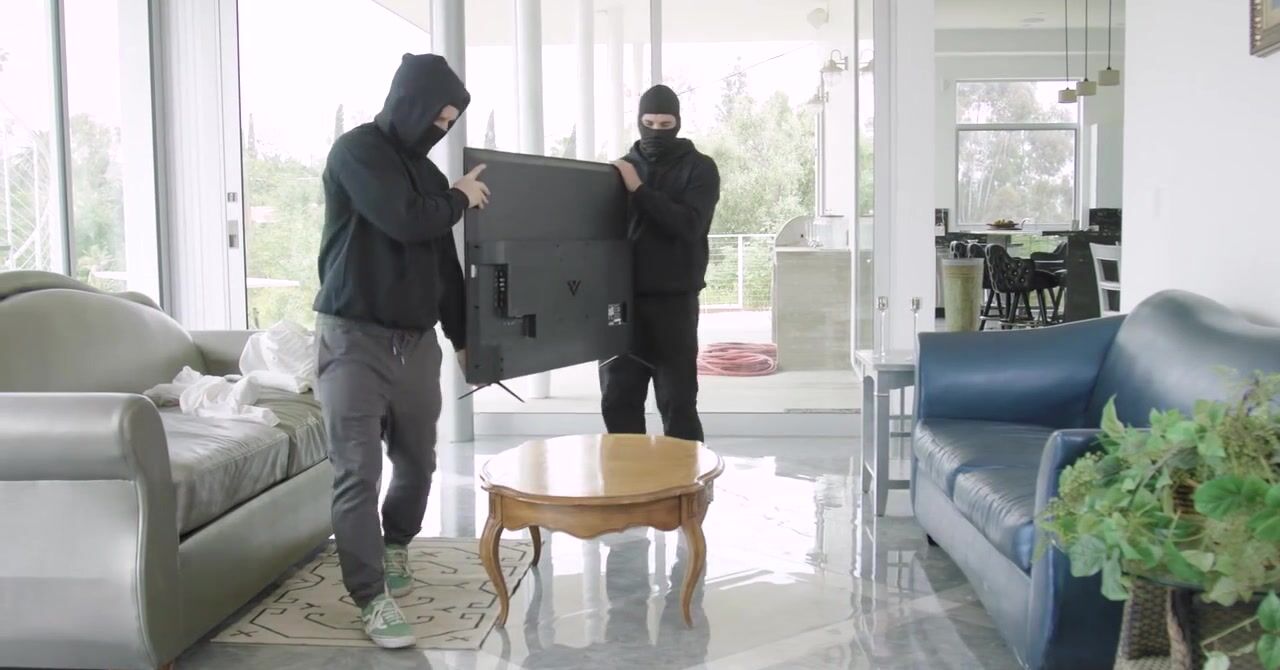 «Возбужденная милфа, которая только что мастурбировала киску в душе, решает соблазнить на секс одного вора. Двое мужчин проникли в её дом, а белокурая бестия не придумала ничего лучше как трахнуться с ними. Сперва она поразвлеклась с одним нарушителем закона, а потом соблазнила второго. Таким образом эта опытная развратница с силиконовыми сиськами по очереди трахнулась с двумя ворами и ей пофиг, что они её обокрали.»